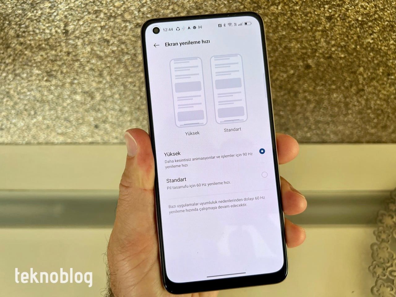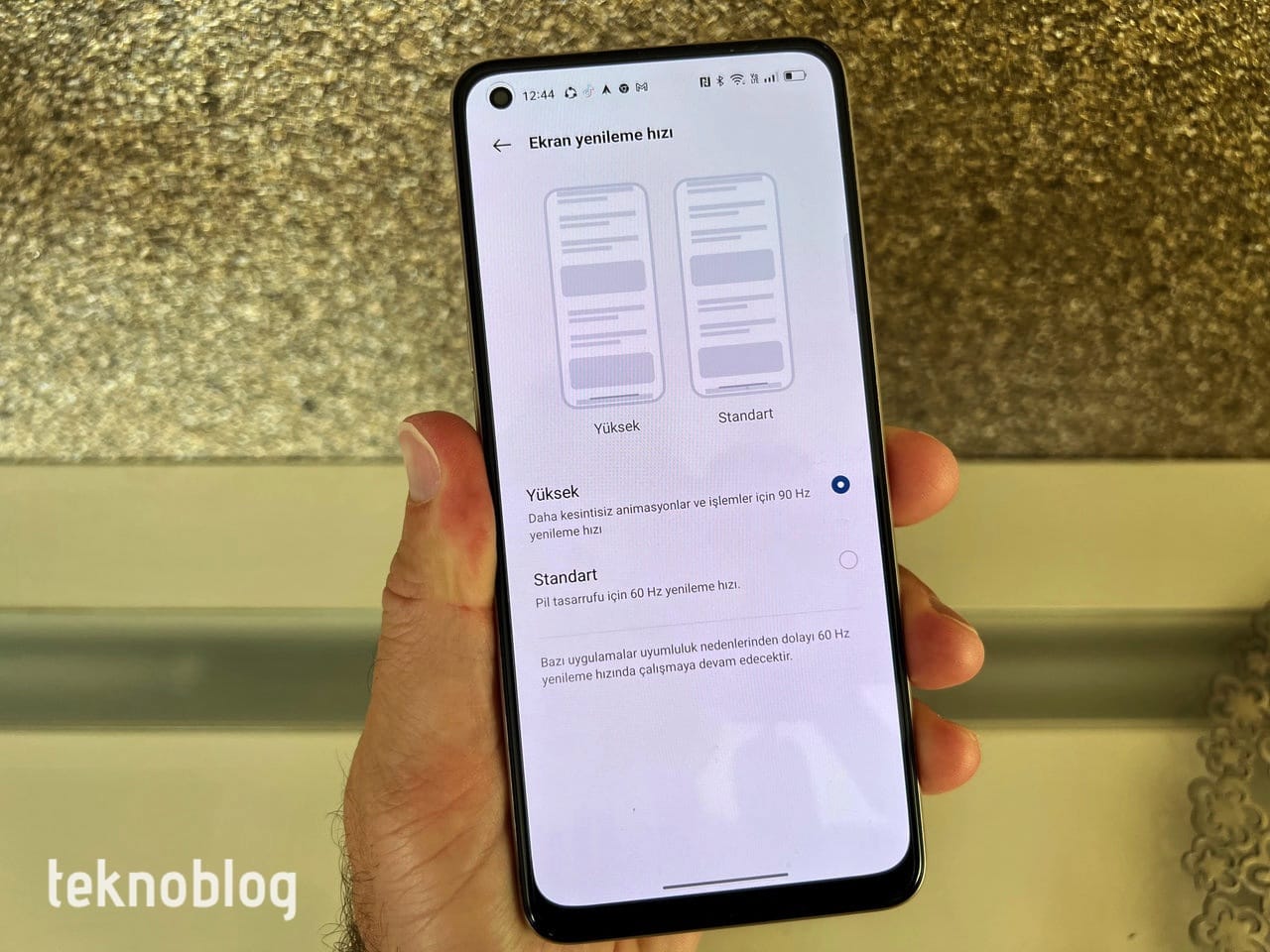 Ekran, daha önceki Reno serisi telefonlarında gördüğümüz şekilde 90 Hz yenileme hızını destekliyor. Kullanıcı arayüzünde geçişlerde veya web sayfalarında kaydırmalarda bu akıcılık hissediliyor. Pil tasarrufu için 60 Hz yenileme hızına geri dönme imkanınız da var. Ekranın renk profili Canlı olarak ayarlanmış ve bu şekilde gerçekten de canlı ve göz alıcı bir görsellik sunuluyor. Ekran ayarları içinden Doğal renk modunu seçebilirsiniz, ancak bu ayarda renkler biraz daha soğuk ve solgun görünüyor. Oppo, ekranın renk dengesini sıcak veya soğuk arasında dilediğiniz şekilde ayarlama imkanı da sunuyor.
