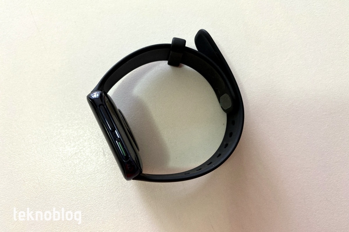 Elimizdeki siyah renkli Oppo Watch, onu tamamlayacak siyah renkli lastik kordonla birlikte geliyor. Kordonun biraz farklı bir toka mekanizması var. En azından alışıncaya kadar saati takarken biraz dikkatli olmanızda fayda var. Oppo’nun kendi kordon bağlantı mekanizması var, bu da piyasada bulunan ve farklı akıllı saatlerle kullanılabilen kayış veya kordonları bu saatle kullanamazsınız. Mekanizmanın güzel tarafı kordonun kolaylıkla çıkarılması ve sağlam şekilde yeniden yerine takılması oluyor.