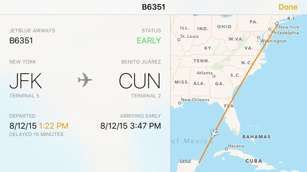 Apple’ın iOS 9 ve OS X El Capitan’da sunacağı uçuş bilgileri uçağın kalkış ve varış zamanlarıyla sınırlı kalmıyor. Kullanıcılar, gerçekleştirdikleri pek çok sorguda, uçaklarının o anda nerede olması gerektiğini gösteren bir haritaya da erişebilecekler.