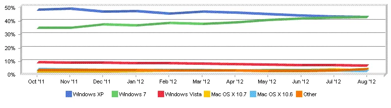 Mountain Lion, 1,5 ay gibi kısa bir sürede %1.34 pazar payına ulaşmayı başardı. Ağustos ayında yaşanan bir diğer gelişme de, Microsoft’un en güncel işletim sistemi unvanını kısa bir süre sonra Windows 8’e bırakmayaa hazırlanan Windows 7’nin sonunda Windows XP’yi geride bırakması oldu. Net Applications mobil işletim sistemlerinin web trafiğindeki yerine dair rakamları da paylaştı. Apple’a ait mobil cihazların rakamları ayrı ayrı verilirken,iPad’in toplam web trafiğinin %3.37’sinin kaynağı olduğu görülüyor. iPhone için bu oran ise %2.42. Android işletim sistemli cihazlar ise %1.71’lik bir paya sahip.