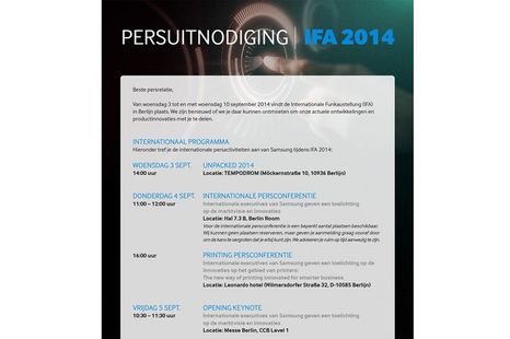 Samsung IFA 2014 kapsamında düzenleyeceği Unpacked etkinliğinin davetiyelerini dağıtmaya başladı. 3 Eylülde gerçekleşecek etkinlikte Samsung'un önemli duyurular gerçekleştirmesine kesin gözüyle bakılıyor. Galaxy Note serisinin yeni üyesinin her yıl olduğu gibi