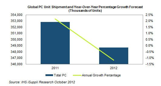 IDC ve Gartner’ın sırasıyla HP ve Lenovo’yu lider gösterdiği küresel PC sevkiyat raporları dünya çapında PC sevkiyatının düşmekte olduğunu ortaya koyuyor. IHS iSuppli tarafından gerçekleştirilen bir başka araştırma da sonuç açısından paralellik içeriyor. 2011’de 352.8 milyon birim olarak gerçekleşen sevkiyatın 2012 sonunda 348.7 milyon birim ürüne düşmesi bekleniyor. Bununla birlikte okul döneminin başlamasıyla gerçekleşen satışların tabloya olumlu şekilde yansıması da bekleniyor, bu nedenle herkes iyimser tavrını koruyor.