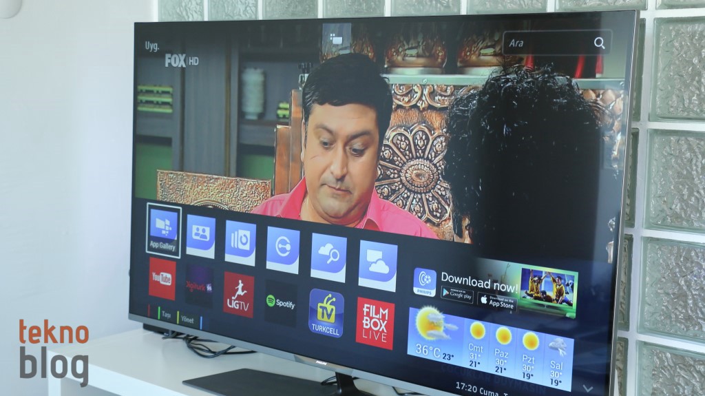 Smart TV uygulamaları da Philips TV’nin önemli unsurları arasında yer alıyor. Wi-Fi bağlantısına sahip olan TV üzerinden YouTube, Digiturk Play, Spotify, Lig TV, Turkcell TV, Film Box Live gibi uygulamalara erişmek mümkün oluyor. Ayrıca App Gallery üzerinden de daha fazla uygulamaya erişim sağlanıyor. Yine USB portuna bağlayacağınız parmak bellek veya harici disk üzerindeki multimedya dosyalarına erişebilir, bunları TV üzerinden açabilirsiniz.