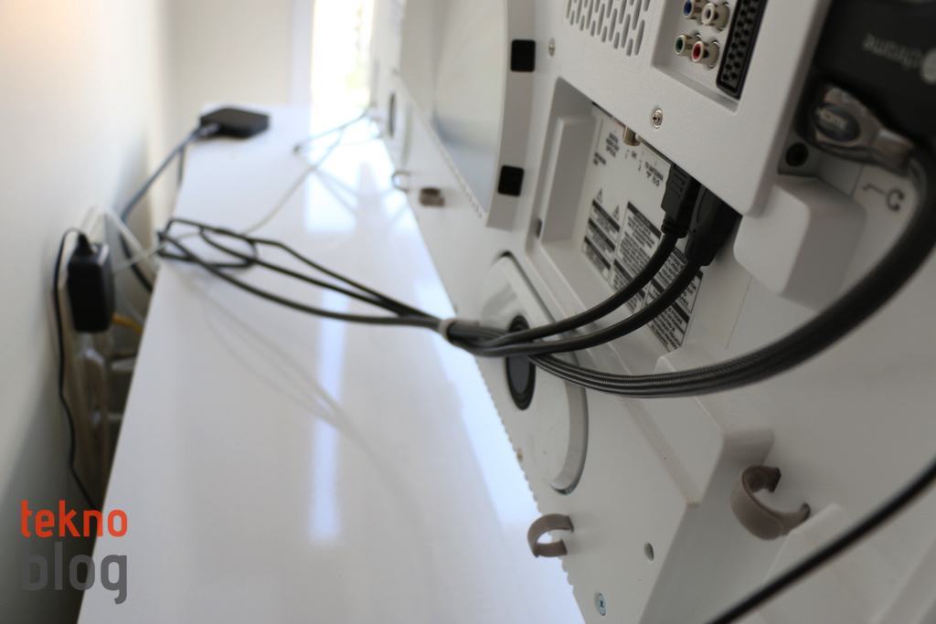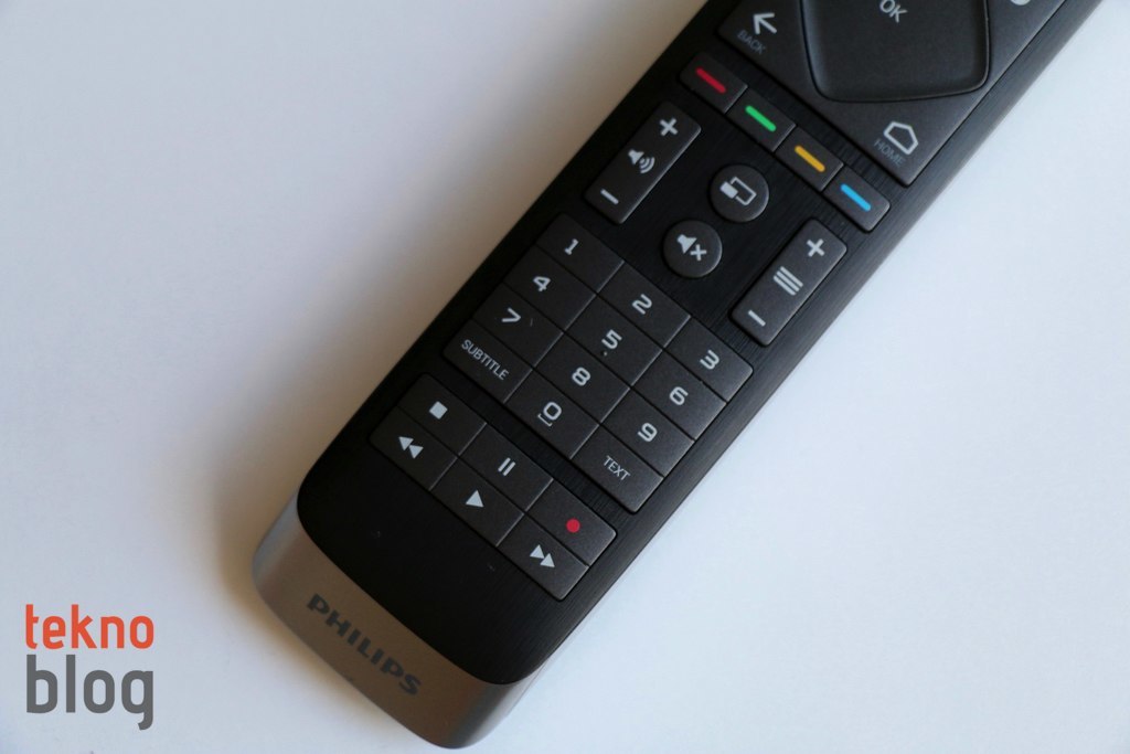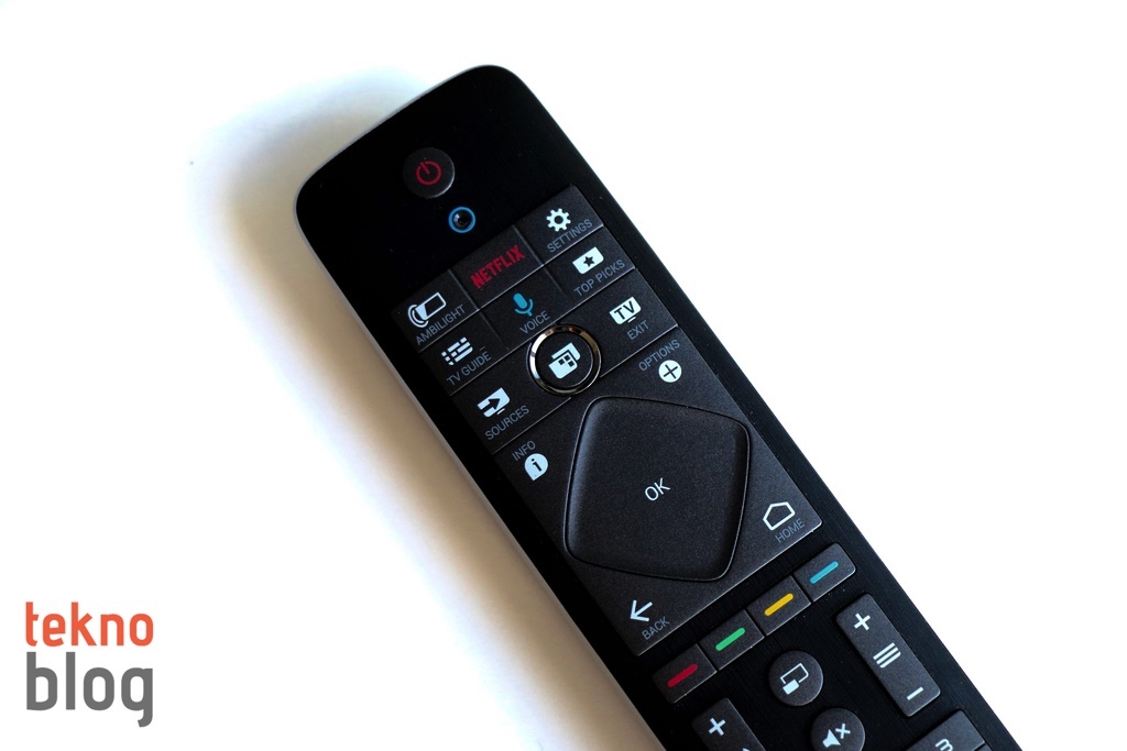 Televizyonun Bluetooth destekli uzaktan kumandası ise oldukça ağır. Kumandanın ön tarafında tuşlar ve trackpad işlevi gören bir alan bulunurken, diğer tarafta ise fiziksel klavye yer alıyor. Kumandaya Netflix’e hızlı erişim tuşunun yerleştirilmiş olması dikkat çekiyor. Mikrofon tuşu ise Google üzerinde sesli arama yapılabilmesini mümkün kılıyor. Arka tarafta bulunan klavye, televizyon aracılığıyla web’de gezinmeyi ve uygulamalar için giriş bilgilerini yazmayı büyük ölçüde kolaylaştırıyor.