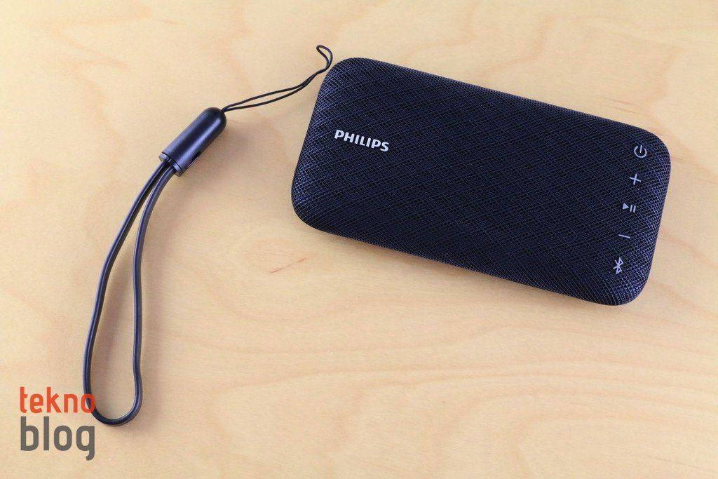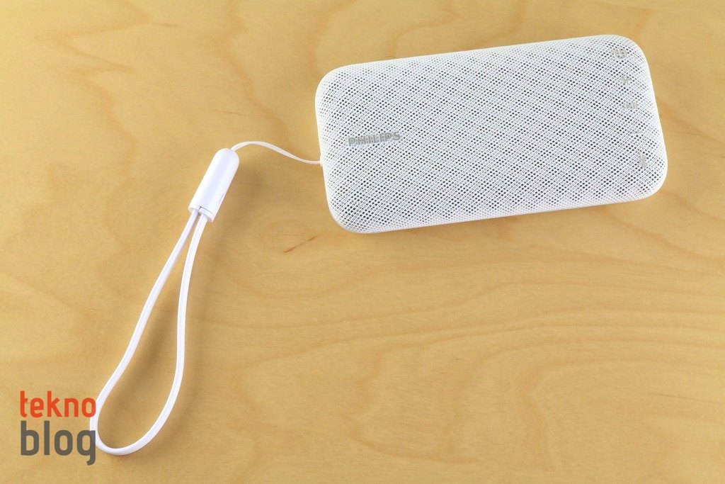 Philips Everplay BT3900W, çantaya rahatlıkla sığan, elde de rahatça taşımaya olanak sağlayan boyutlarda geliyor. 350 gr. ağırlık biraz fazla gibi görünse de, pratikte o kadar fazla sorun yarattığını söyleyemeyiz. Hoparlörün yüzey alanı 6 inçlik bir akıllı telefondan biraz daha büyükçe, kalınlığı ise akıllı telefonların ortalama kalınlığına göre biraz fazla. Elde uzun süre tutmak istemeyebilirsiniz, ancak kutusundan çıkan ve hoparlörün kenarındaki yuvasından bağlanan, aynı zamanda USB kablosu işlevini de gören bilek kayışı sayesinde bileğinize asılı şekilde de istediğiniz yere taşıyabilirsiniz.