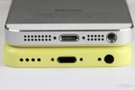 Plastik iPhone ile iPhone 5’in arkaları da tasarım açısından birbirlerine benziyor. Alt kısımlar karşılaştırıldığına iPhone 5’in Lightning portu etrafına yerleştirilmiş hoparlör ve mikrofon ızgaraları belirli bir düzen içerirken plastik iPhone’da bağlantı girişinin sadece bir yanına dört adet hoparlör deliği açılmış. Kulaklık jakının yanında yer alan küçük delik de mikrofon işlevi görüyor olabilir. Bunun dışında her iki cihazda ses tuşları tasarım açısından farklılık gösteriyor. iPhone 5’te dairesel tuşlar kullanılırken plastik iPhone’da ince ve uzun şerit tuşların kullanıldığını görüyoruz.