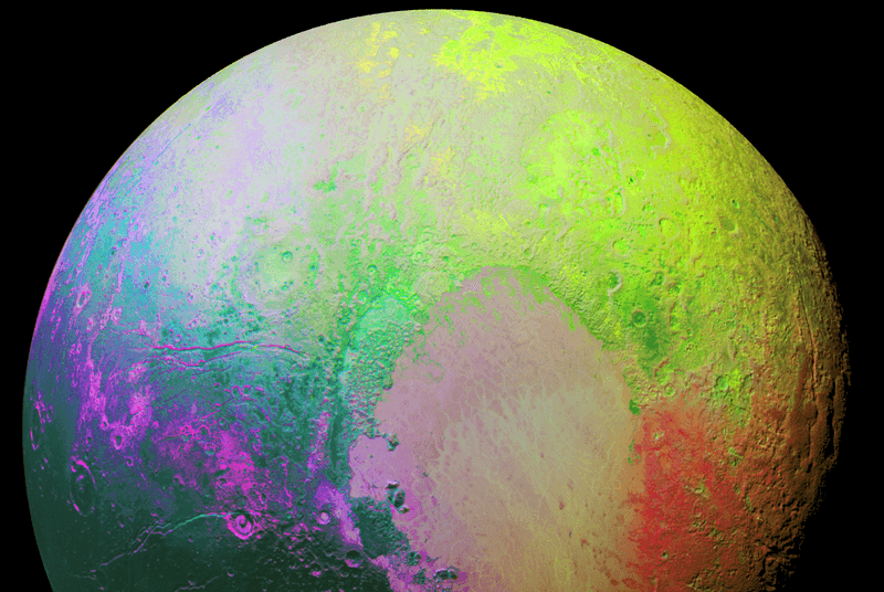 NASA geçtiğimiz haftasonuna girilirken cüce gezegen Plüton‘un sahte renklendirilmiş bir fotoğrafını yayınladı. Temel bileşen analizi olarak adlandırılan bir teknik kullanan NASA bilim insanları Plüton yüzeyindeki gizli renk değişimlerini bu şekilde açığa çıkmaya zorlayabildi. Bu sahte renklendirilmiş görüntü Plüton’un yüzeyinde hangi bölgelerin birbirine benzediğini, nerelerin birbirinden farklı olduğunu anlama konusunda yardımcı oluyor.