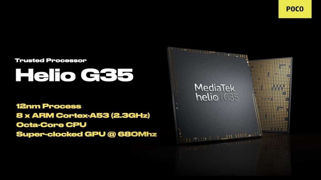 Poco C31’in kalbinde MediaTek’in Helio G35 işlemcisi bulunuyor. Bu işlemciye 3 veya 4 GB RAM eşlik ediyor. Dahili depolama alanı seçenekleri ise 32 ve 64 GB. Depolama alanının üzerine microSD kart desteğiyle 512 GB daha eklenebiliyor.