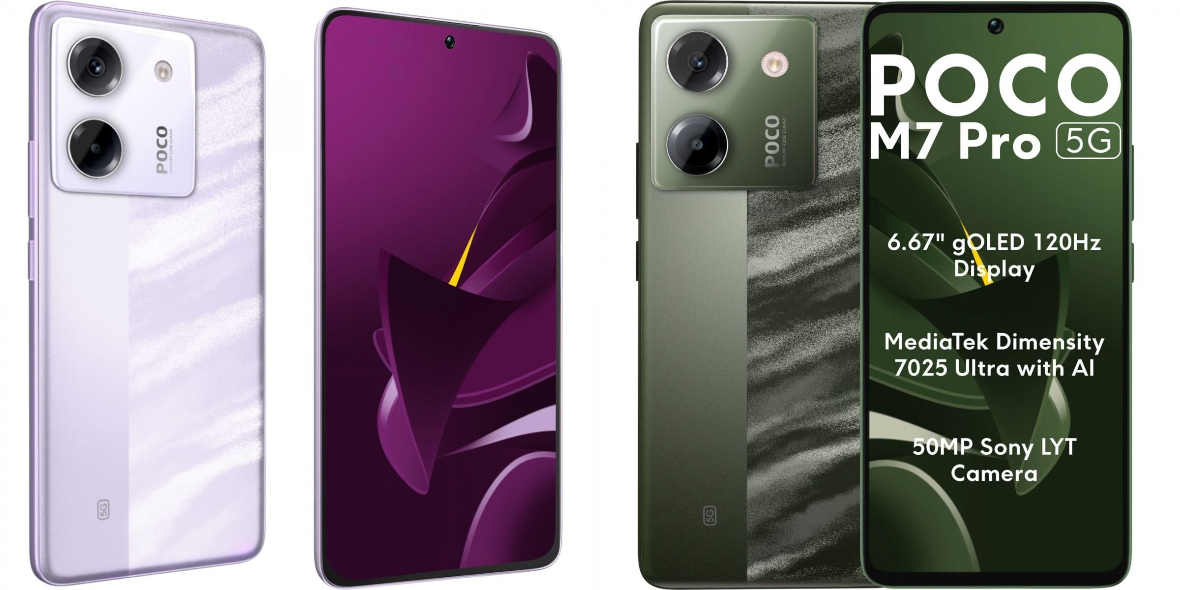 Tasarım açısından bakıldığında, POCO M7 Pro 5G sade ve düz hatlara sahip bir gövde yapısıyla karşımıza çıkıyor. Arka yüzey cam benzeri plastikten üretilmiş ve parmak izi bırakmayan bir yüzey tasarlanmış. Cihaz üç farklı renk seçeneğiyle satışta: Mor, yeşil ve koyu mavi. Renkler, genç kullanıcı kitlesine hitap edecek şekilde belirlenmiş.