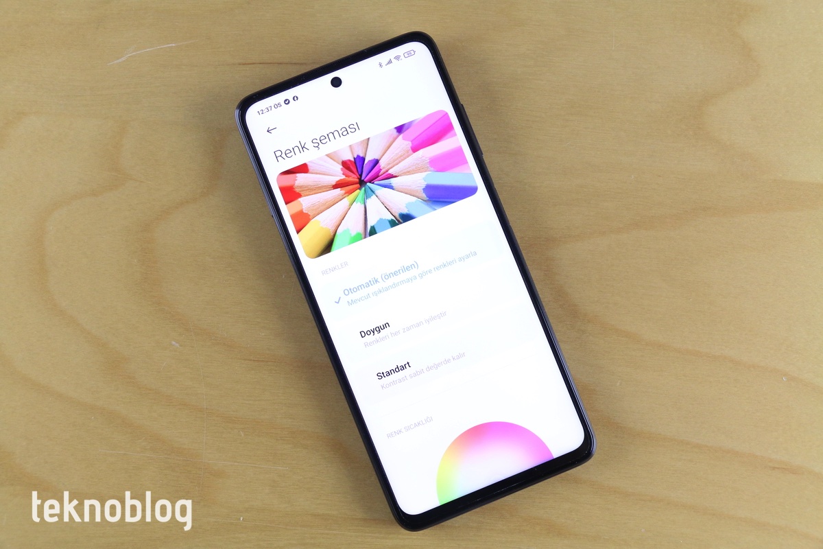Ekranın 450 nit seviyesinde parlaklığı var. Sınıfı için bu parlaklığın makul olduğu söylenebilir. Ortamdaki ışığa göre parlaklık otomatik olarak ayarlanıyor. Ekran parlaklığını en düşük seviyeye getirdiğimizde ise ekran ışığının titreştiğine tanık oluyoruz. Özellikle karanlık bir ortamda ekran ışığını iyice kısarsanız bu durum belli oluyor. Ekran için üç farklı renk şemasının ön yüklü olarak geldiğini görüyoruz. Ortamın ışıklandırmasına göre otomatik olarak ayarlanan renk şeması dışında renkleri daha da zenginleştiren Doygun ve kontrastı sabit değerde tutan Standart var. Renk Sıcaklığını isteğinize göre çeşitlendirebilirsiniz.