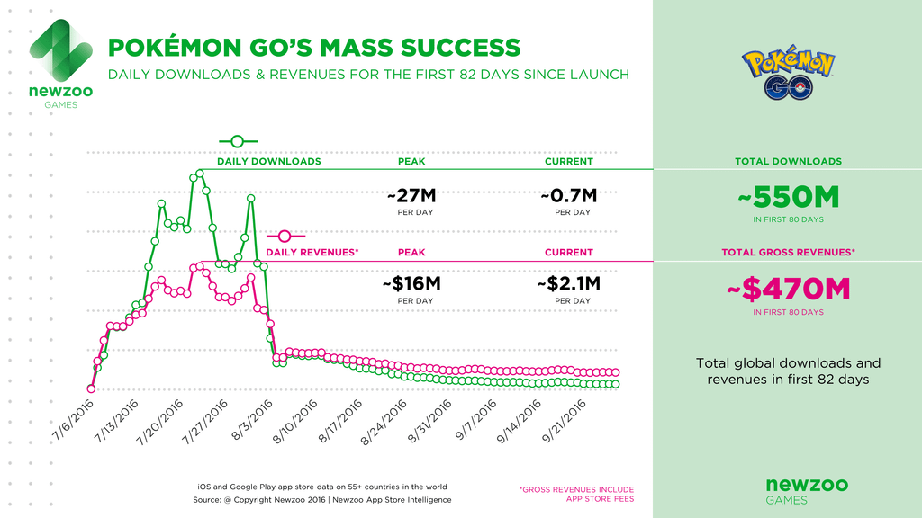 Newzoo’nun ölçümlerine göre, oyunun günlük tahmini indirme sayısı 700 bin civarında seyrediyor. Bir zamanlar bu rakamın 16 milyon seviyesinde olduğu göz önüne alınınca ortada bir çöküş olduğu düşünülebilir. Ancak halen günde 700 bin indirme sayısına ulaşan bir uygulama için de işlerin yolunda gittiği rahatlıkla söylenebilir.