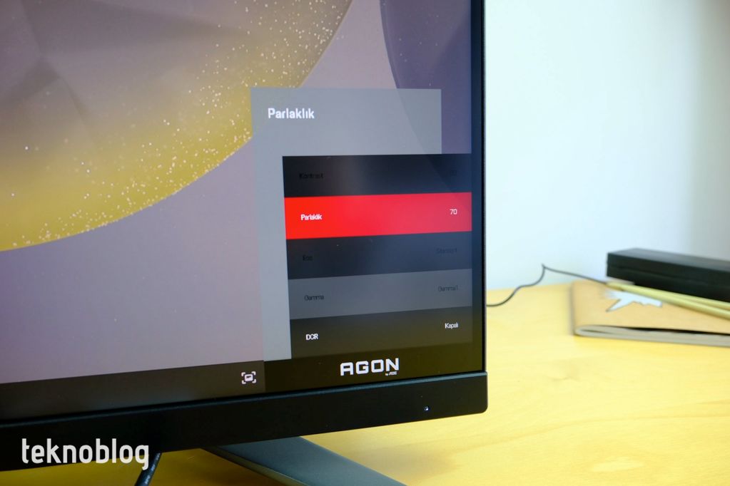 Monitör ayarlarını kontrol etme konusuna gelince, Porsche Design AOC Agon Pro PD27S, kullanımı kolay bir OSD (onscreen display) menüsüne sahip. Bu sayede kullanıcılar monitör ayarlarını özelleştirebilirsiniz. Bu menü basit görünse de, kullanmaya alışmak için biraz zaman gerekebilir. Arkada, kullanıcıya göre sağ alt köşeye denk gelecek biçimde bir kontrol kolu yerleştirilmiş. Bunu yukarı, aşağı, sağa ve sola hareket ettirerek, ayrıca basarak çeşitli kontrolleri yerine getirebilir veya ayarları yapabilirsiniz. Bu OSD menüsü ekranın sağ kenarında büyükçe bir alan kaplıyor. Büyük kutucuklu tasarımı her bir bölümü kolayca ayırt etmeye izin veriyor. Bölümlere girdiğinizde de, yine sağ tarafta kalan sütunda ayarları görmeye devam edebilirsiniz. Ayarlar açısından bu OSD menüsü bir hayli zengin görünüyor. Yukarıda belirttiğimiz LightFX aydınlatma sisteminde ses sistemine, parlaklıktan ekstra ayarlara kadar çeşitli seçenekler mevcut.