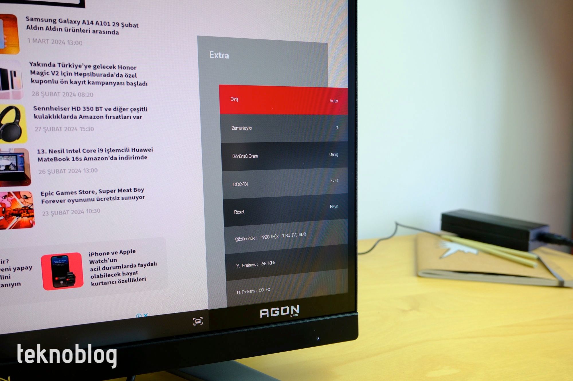 Monitör ayarlarını kontrol etme konusuna gelince, Porsche Design AOC Agon Pro PD27S, kullanımı kolay bir OSD (onscreen display) menüsüne sahip. Bu sayede kullanıcılar monitör ayarlarını özelleştirebilirsiniz. Bu menü basit görünse de, kullanmaya alışmak için biraz zaman gerekebilir. Arkada, kullanıcıya göre sağ alt köşeye denk gelecek biçimde bir kontrol kolu yerleştirilmiş. Bunu yukarı, aşağı, sağa ve sola hareket ettirerek, ayrıca basarak çeşitli kontrolleri yerine getirebilir veya ayarları yapabilirsiniz. Bu OSD menüsü ekranın sağ kenarında büyükçe bir alan kaplıyor. Büyük kutucuklu tasarımı her bir bölümü kolayca ayırt etmeye izin veriyor. Bölümlere girdiğinizde de, yine sağ tarafta kalan sütunda ayarları görmeye devam edebilirsiniz. Ayarlar açısından bu OSD menüsü bir hayli zengin görünüyor. Yukarıda belirttiğimiz LightFX aydınlatma sisteminde ses sistemine, parlaklıktan ekstra ayarlara kadar çeşitli seçenekler mevcut.