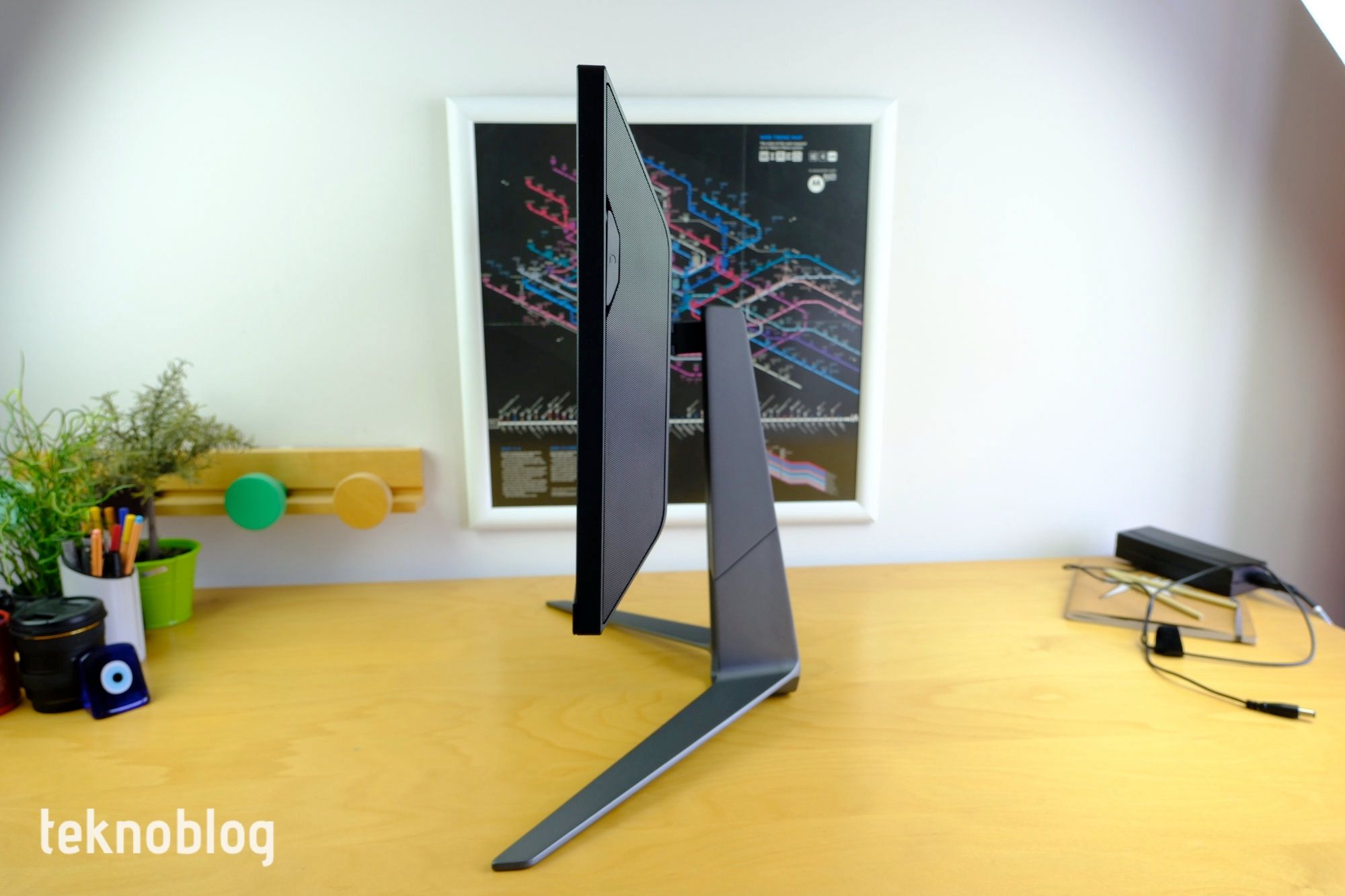 PD27S, kullanıcının konforunu ön planda tutan ergonomik özelliklere sahip. Monitör, 150 mm yükseklik ayarı, eğim ve döndürme gibi özelliklerle donatılmış, böylece kullanıcılar uzun oyun seansları boyunca ideal görüş açısını ve konforu bulabiliyor. Bu ayarlanabilirlik, PD27S’nin sadece bir oyun monitörü olmadığını, aynı zamanda kullanıcının ihtiyaçlarına göre şekillenen bir çalışma arkadaşı olduğunu gösteriyor. Eğer bu monitörü bir dizüstü bilgisayarla birlikte ikili monitör düzeninde kullanmayı düşünüyorsanız, yükseklik ayarı sayesinde konumlandırmayı rahatlıkla yapabilirsiniz. Bunun yanı sıra monitörü 90 derece döndürüp düşey konuma getirebilirsiniz. Bu da PD27S’yi kod yazanlar için fazlasıyla kullanışlı hâle getiriyor. Öte yandan mobil oyunları bir kumanda yardımıyla daha büyük ekranda oynamak isteyenler için de bu düşey konumda kullanma imkanı fazlasıyla yardımcı olacaktır.