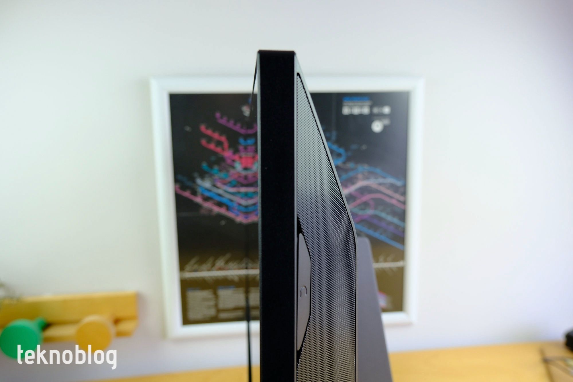 PD27S gibi şık bir monitörde hoparlör olmazsa olmazdı. Arka tarafta her iki kenara yerleştirilmiş bir hoparlör sistemi var. Dahili 5W’lık DTS Sound sertifikalı hoparlörler, kullanıcılara, ayrı bir ses sistemi gerektirmeden yeterli bir ses deneyimi sunuyor. Ses çıkış şiddeti ortalamalarda, çok yüksek sayılmaz. Baslar konusunda tatmin edici, tizler ise çok yüksek seviyeye çıkmıyor. Bu monitörü genellikle Huawei MateBook 14s dizüstü bilgisayarla kullandık. HDMI portu üzerinden ses ve görüntü aktarımı birlikte yapılıyor. Ne var ki, ses çıkışı için daha çok MateBook 14s’nin dahili hoparlörlerini tercih ettik.