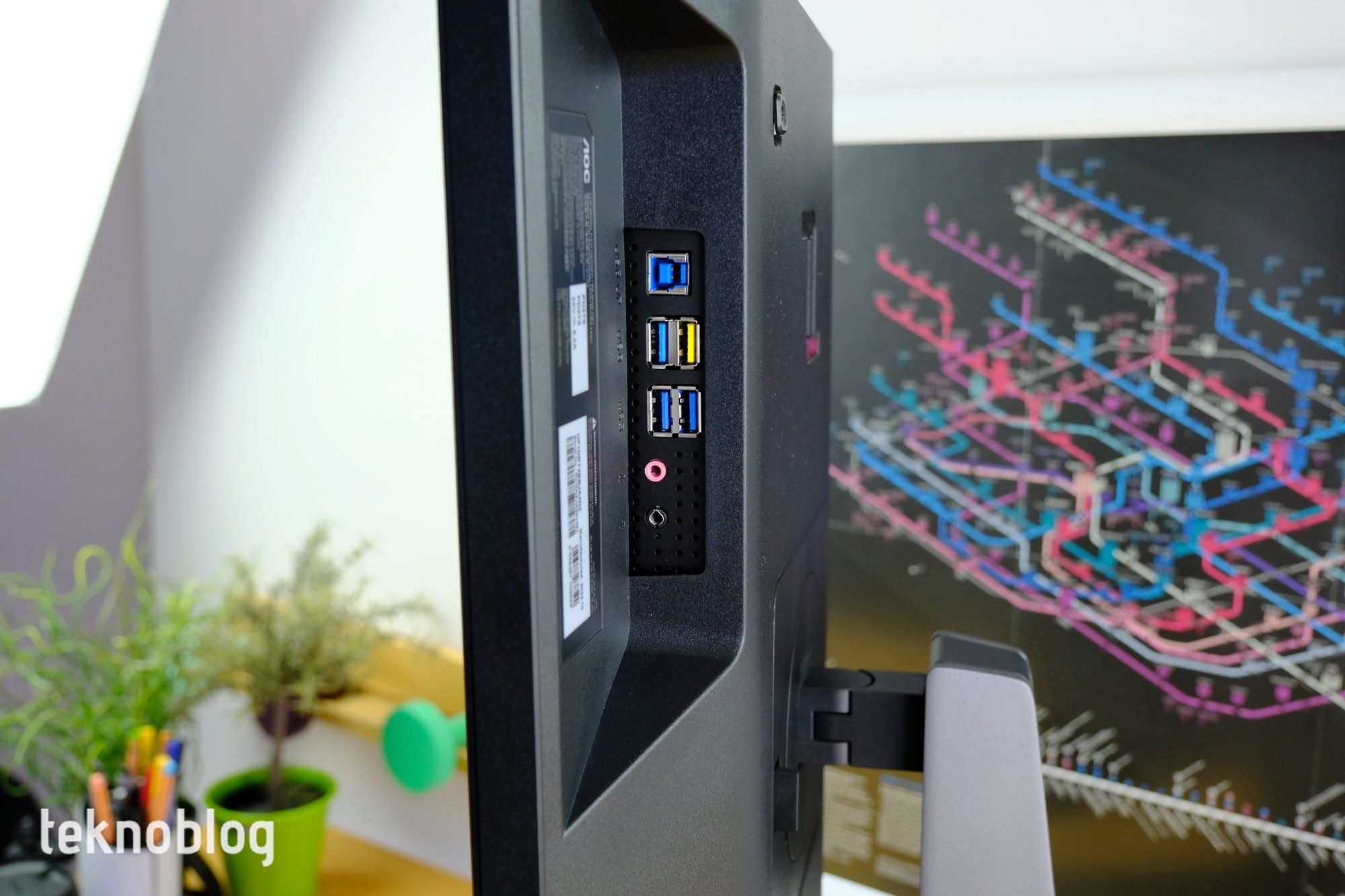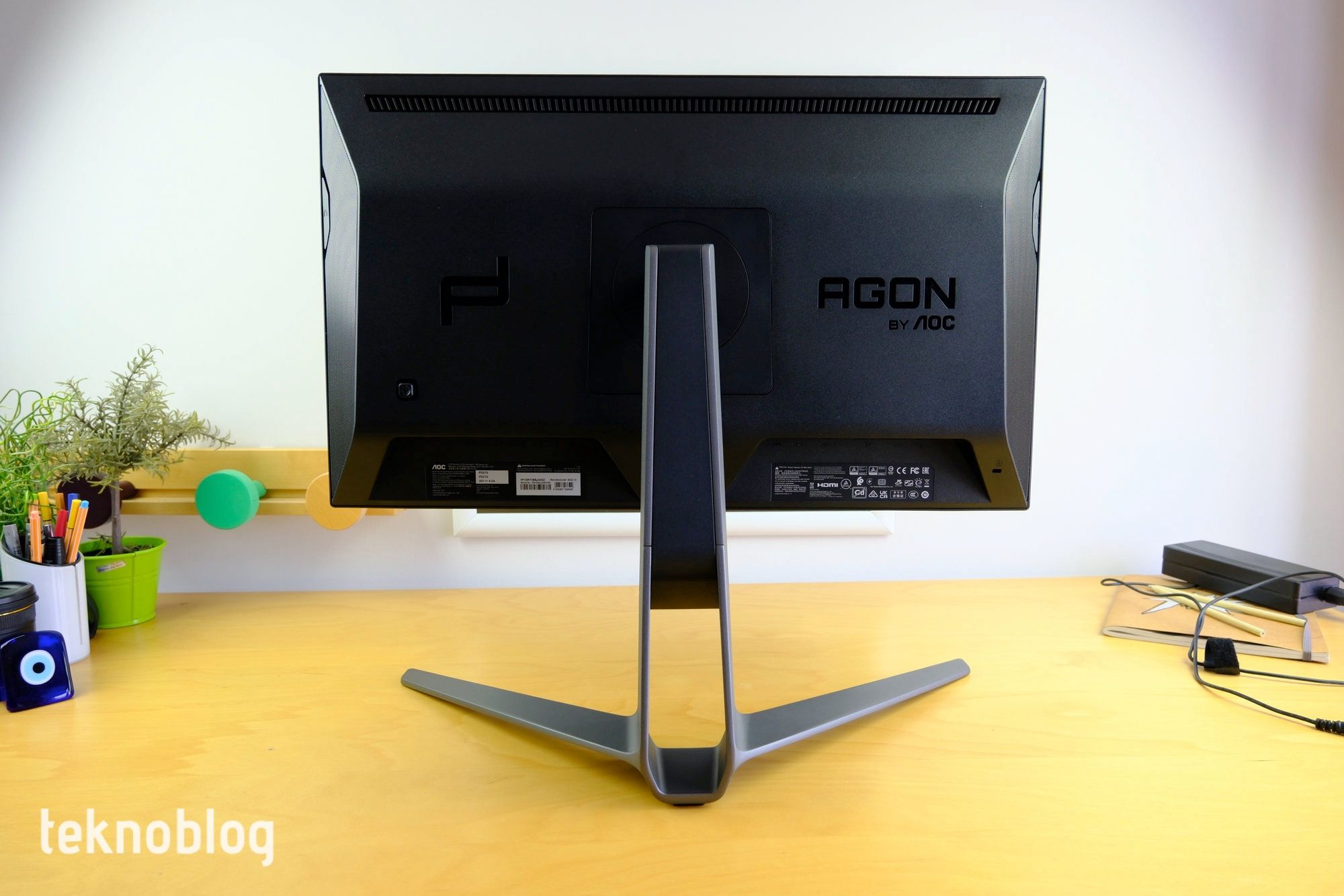 Bu arada Porsche Design AOC Agon Pro PD27S’nin sahip olduğu şık ve havalı ayak, kablo karmaşasını ortadan kaldıracak biçimde tasarlanmış. Monitörle bağlantı bölümünde yer alan boşluk içinden kabloları geçirerek onların daha düzenli bir şekilde organize edilmesini sağlayabilirsiniz. Yukarıda da belirttiğimiz gibi, aşağı doğru bakan port tasarımı da kablo organizasyonu daha kolay ve zahmetsiz hâle getiriyor.