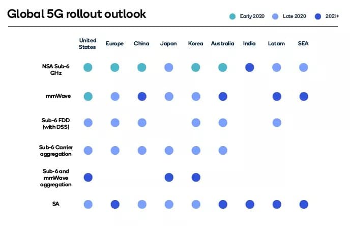 Bu arada X60 modemi taşıyan akıllı telefonları en azından 2020 sonuna kadar görmeyecek gibiyiz. Bunun tüketiciler açısından herhangi bir sorun yaratacağını düşünmüyoruz. Çünkü Qualcomm’un da aşağıdaki tabloda gösterdiği gibi, X60 ile mümkün olacak 6 GHz ve mmWave birleştirme ya da 6 GHz altı taşıyıcı birleştirme gibi teknikler 2020’nin sonundan önce kullanılamayacak.