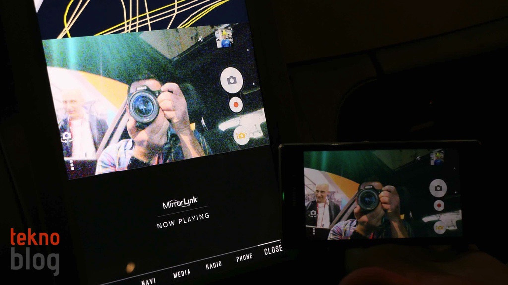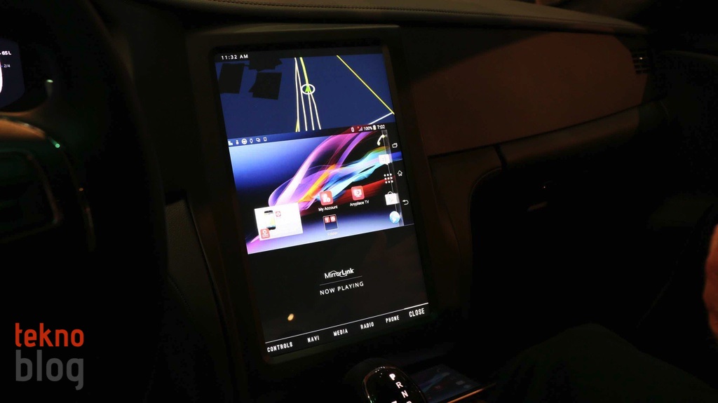 Mirrorlink aracılığıyla otomobile bağlanan Android telefonun kullanıcı arayüzünü kontrol paneline yansıtabilir, telefonu kontrol paneli üzerinden dokunmatik olarak yönetebilirsiniz. Saydığımız bu iki ekrana ek olarak arkadaki yolcular için de, normal otomobillerde genellikle küllük veya bardaklığın bulunduğu noktada bir ekran bulunuyor. Buradan da arkadaki yolcular için çeşitli içerikler oynatılabiliyor veya onlar da bu ekran üzerinden araç içi bilgi ve eğlence sistemiyle etkileşime geçebiliyor.
