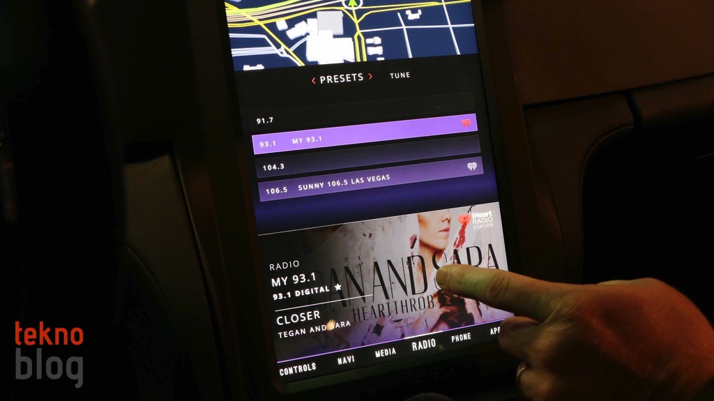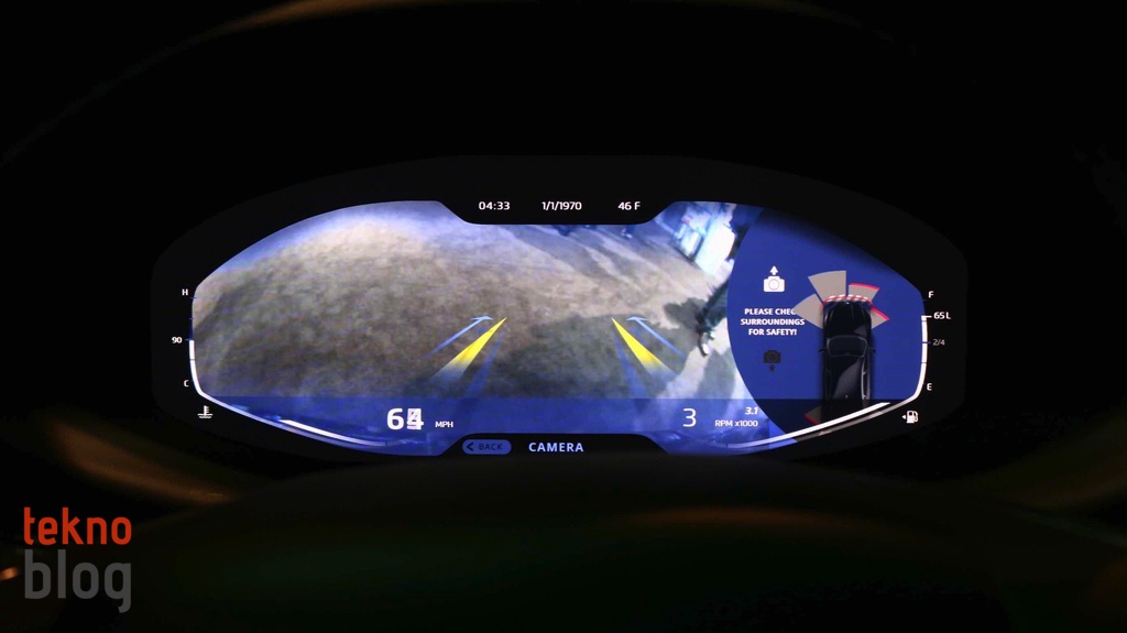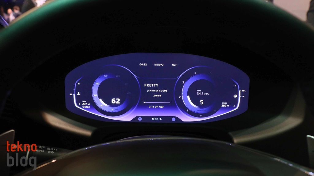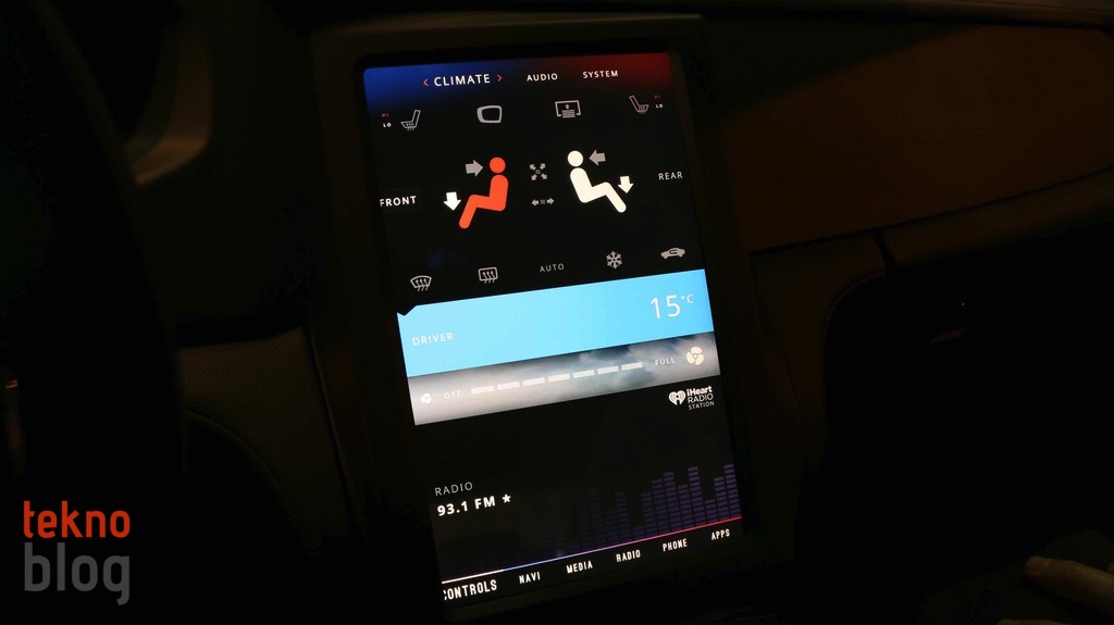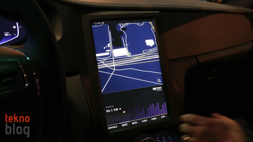 Otomobilin içinde üç tane büyük ekran var. Bunlardan biri direksiyonun hemen arkasında, burada hız, yakıt, motor göstergeleri yer alıyor, kamera görüntüleri de buraya yansıtılabiliyor. Sürücü ve ön yolcu koltuğunun arasına denk gelen bölümdeyse büyük bir dokunmatik ekran var. QNX tabanlı sistemle etkileşim bu kullanıcı arayüzü üzerinden kuruluyor. Sesli komut destekli bu sisteme istediğinizi söylemeniz yeterli. Örneğin bir yere gitmek istediğinizde yol tarifini sesli olarak isteyin, daha sonra uygun rota çıkarılıp kontrol panelinde size gösterilsin. Bunun dışında kontrol paneli üzerinden multimedya sistemini kontrol edebilir, sevdiğiniz şarkıları dinleyebilir veya video izleyebilirsiniz. Bu arada normal FM radyo alıcısının yanı sıra otomobilde bulunan 4G LTE bağlantısı yardımıyla internet radyolarını da dinleyebilirsiniz.