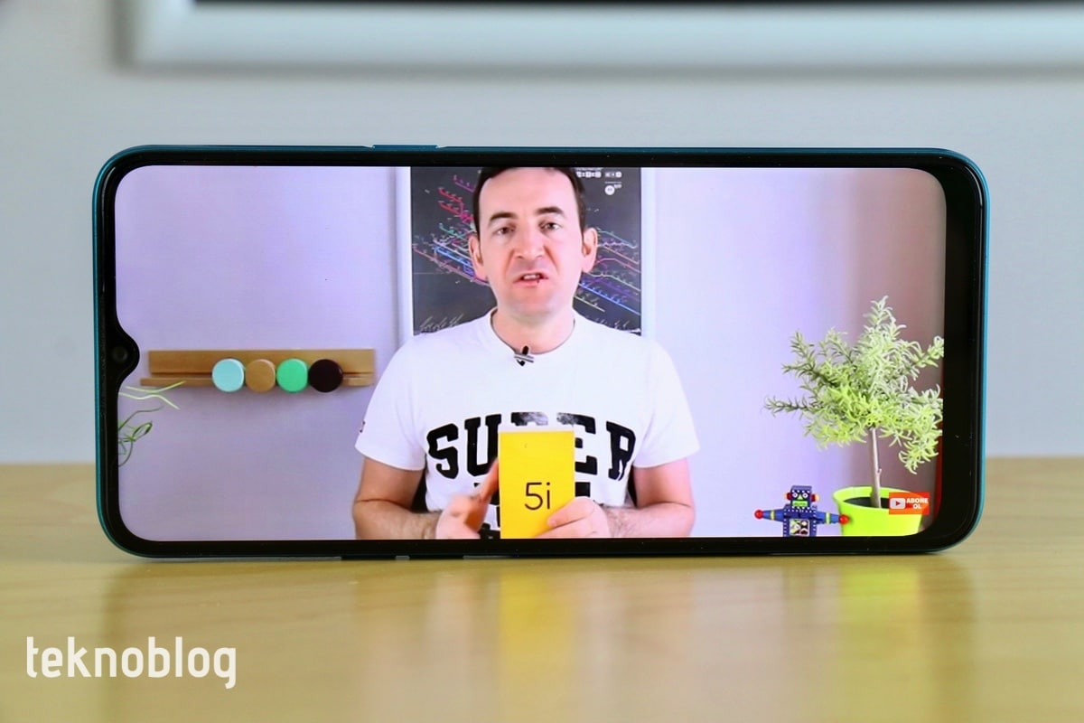 Gorilla Glass 3 ile kaplı olan IPS LCD panel, 1600 x 720 piksel çözünürlüğe sahip. Bu ekranın makul görüntüleme açılarını “makul” olarak nitelemek mümkün. Akıllı telefonun ekranını dış mekanlarda ve parlak ışık altında görme konusunda bir sıkıntı yaşanmıyor. Realme 5i’nin ekranının parlaklık seviyesinin de otomatik olarak ayarlanabildiğini belirtmekte fayda var.