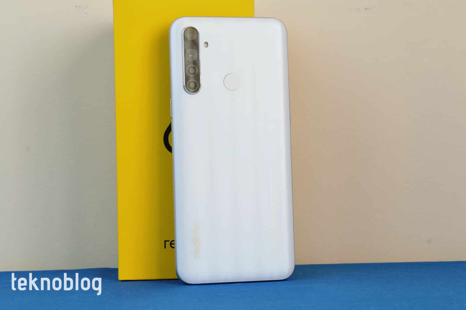 Arka panelde göze batan bir fazlalık olmasa da, dört sensörlü kamera sisteminin dikey çıkıntısının biraz büyük olduğunu söylemek gerekiyor. Söz konusu dörtlünün en üstünde 8 megapiksel çözünürlüklü geniş açılı sensör bulunuyor. 48 megapiksel ana kamera, 2 megapiksel derinlik sensörü ve yine 2 megapiksel makro kamera da sistemin geri kalanında sıralanıyor. LED flaş ise kamera modülünün dışında kalmış. Yuvarlak parmak izi tarayıcısı da Realme 6i’nin arka panelinin “sakinleri” arasında bulunuyor. Arka panel tasarımının genel olarak daha önce test merkezimizde konuk ettiğimiz Realme 5i’ye bir hayli benzediğini belirtmekte de fayda var.