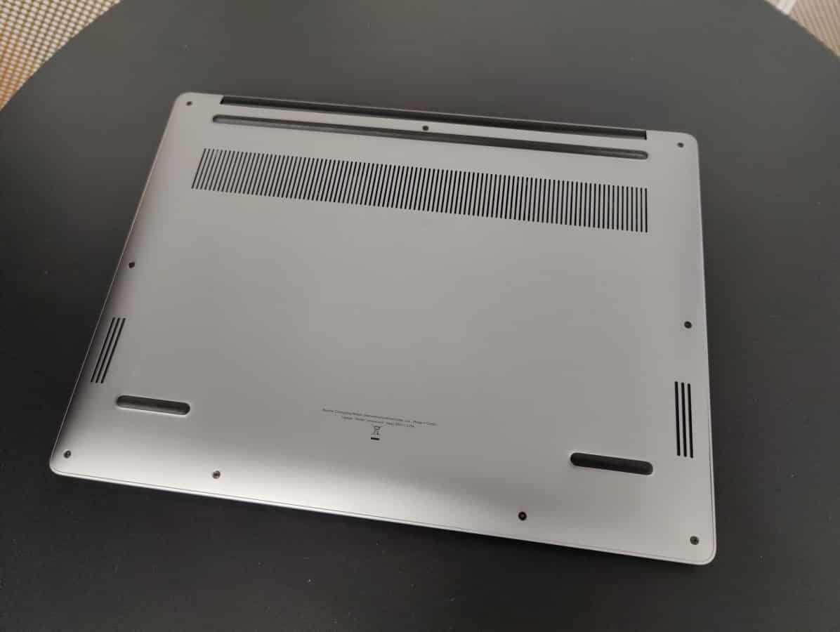 Dizüstü bilgisayarın altında iki hoparlör ve büyük bir fan ızgarası olduğu görülüyor. Donanım konusunda şimdilik başka bir bilgi bulunmazken, yazılım tarafında Windows 10 hemen göze çarpıyor.