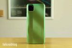 Panelin sol üst köşesinde çift kamera ve LED flaşın bulunduğu kare şeklindeki kamera modülü bulunuyor. Bu modülün hemen altından çıkan şeritin alt kısmında “Realme” logosu yer alıyor. Şeritte kullanılan yeşil tonunun farklı olması da arka panelin görüntüsüne biraz daha dinamizm kazandırıyor.
