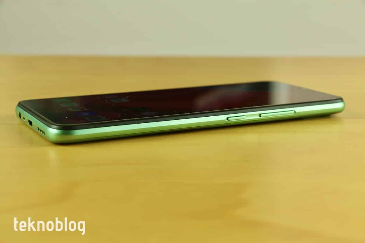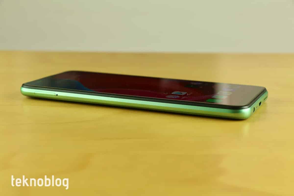 Telefonun üst kenarında herhangi bir şey bulunmuyor. Sol kenarın üst kısmında ise çift nano SIM ve microSD kart tepsisinin yerleştirildiği yuva yer alıyor. Sağ kenarda ise güç butonu ve ses kontrol tuşları kullanıcıları karşılıyor.