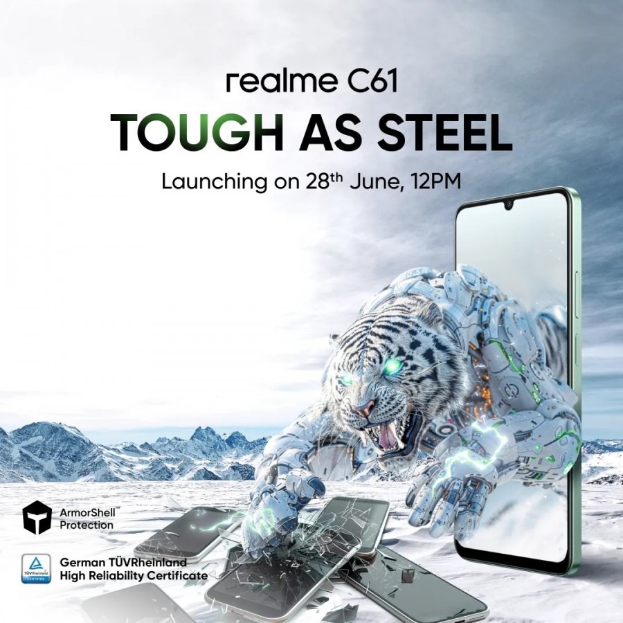 Realme C61 kısa süre önce sızıntılarda boy göstermiş ve böylelikle akıllı telefonun tasarımını, özelliklerini ve fiyatını görmek mümkün olmuştu. Şirket bu sızıntının ardından fazla vakit kaybetmeden telefonun resmi tanıtım tarihini açıkladı. C61, 28 Haziran’da resmen gözler önüne çıkacak.