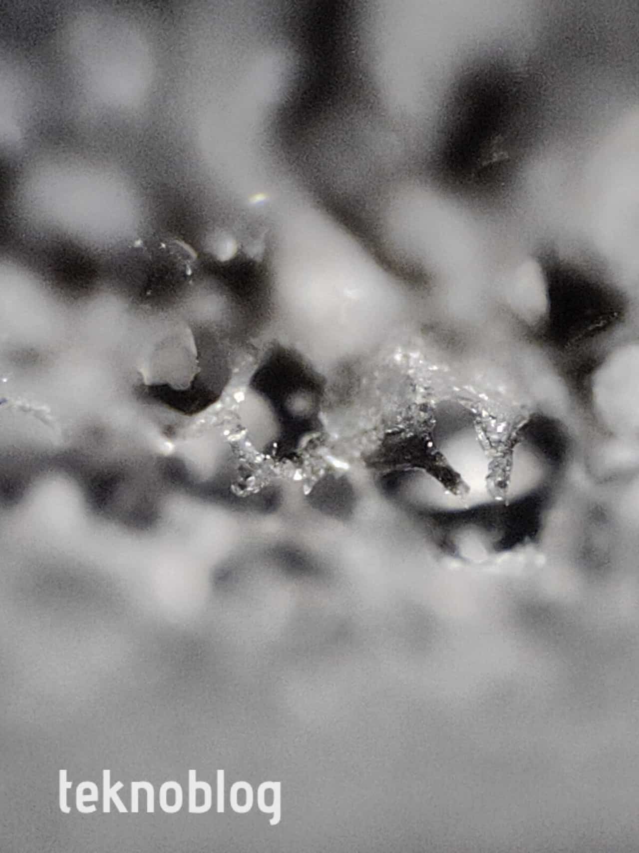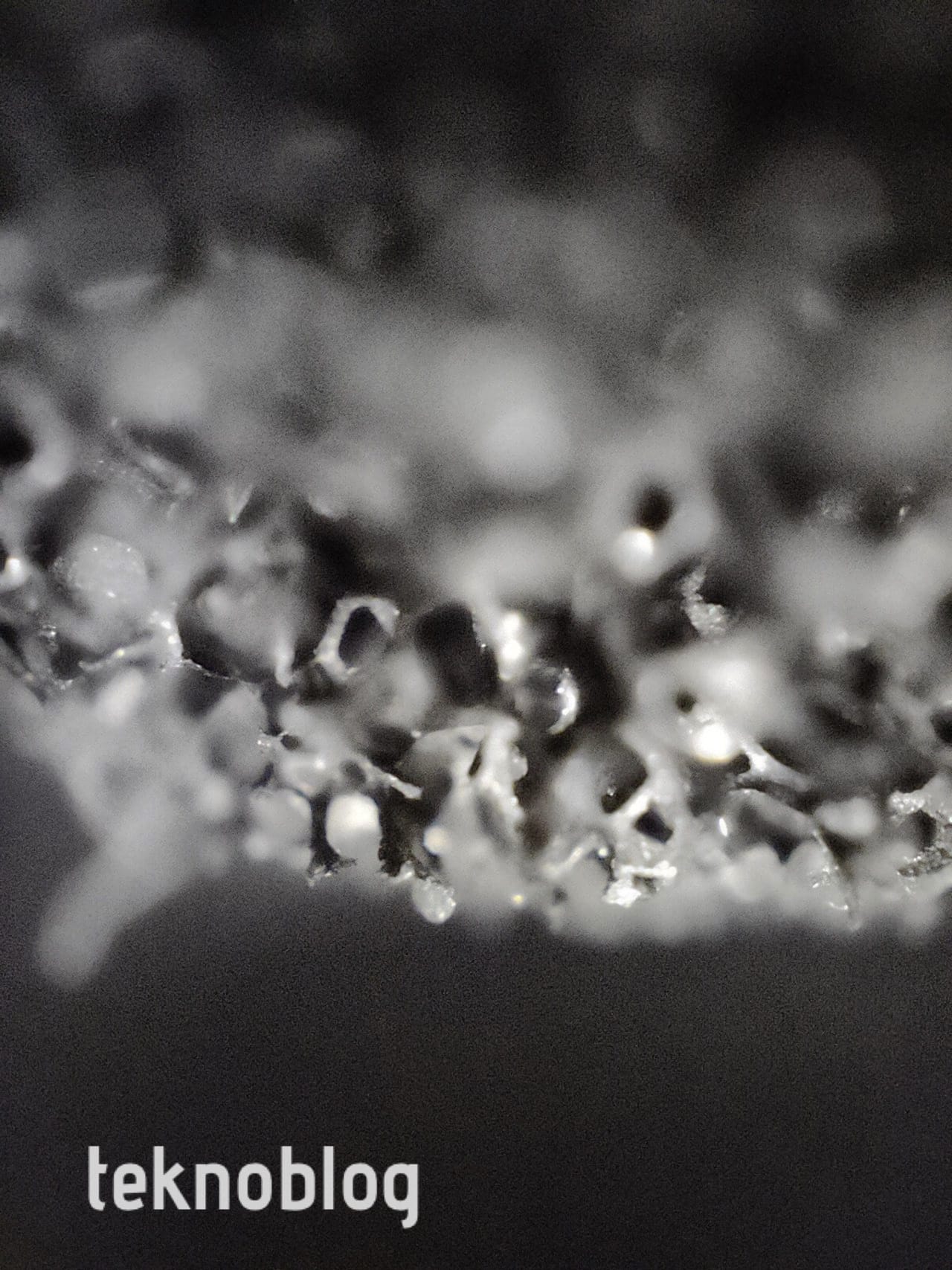Realme GT 2 Pro, kamera özellikleriyle de öne çıkan bir akıllı telefon. Realme de, tanıtımın öncesinde kamera özelliklerinin altını çiziyordu. Bu telefonda 50 megapiksel çözünürlüklü iki arka kamera var. Bunlardan biri ana kamera; f/1.8 diyafram, optik görüntü sabitleme gibi özelliklere sahip. Diğer kamera ise f/2.2 diyafram açıklıklı ultra geniş kamera. Üçüncü bir kamera daha var, ancak bu kamera, şimdiye kadar görmediğimiz şekilde mikroskop kamerası. 3 megapiksel çözünürlük, f/3.3 diyafram gibi özelliklere sahip bu kamera, 40 kata kadar büyütme yapıyor. Çok küçük detayları bu kamera sayesinde yakalayabilirsiniz. Kamera uygulamasında Daha Fazla bölümünde Mikroskop adında bir çekim modu var. Bununla hem fotoğraf hem de video çekebilirsiniz. Çekim için süjeye iyice yakınlaşmanız, neredeyse telefonu süjeye yapıştırmanız gerekiyor. Ortaya çıkan sonuçlar ise gerçekten etkileyici. Realme GT 2 Pro sahipleri, bu kamera sayesinde eğlenceli vakit geçirecek, ilginç detaylar yakalayacaktır.