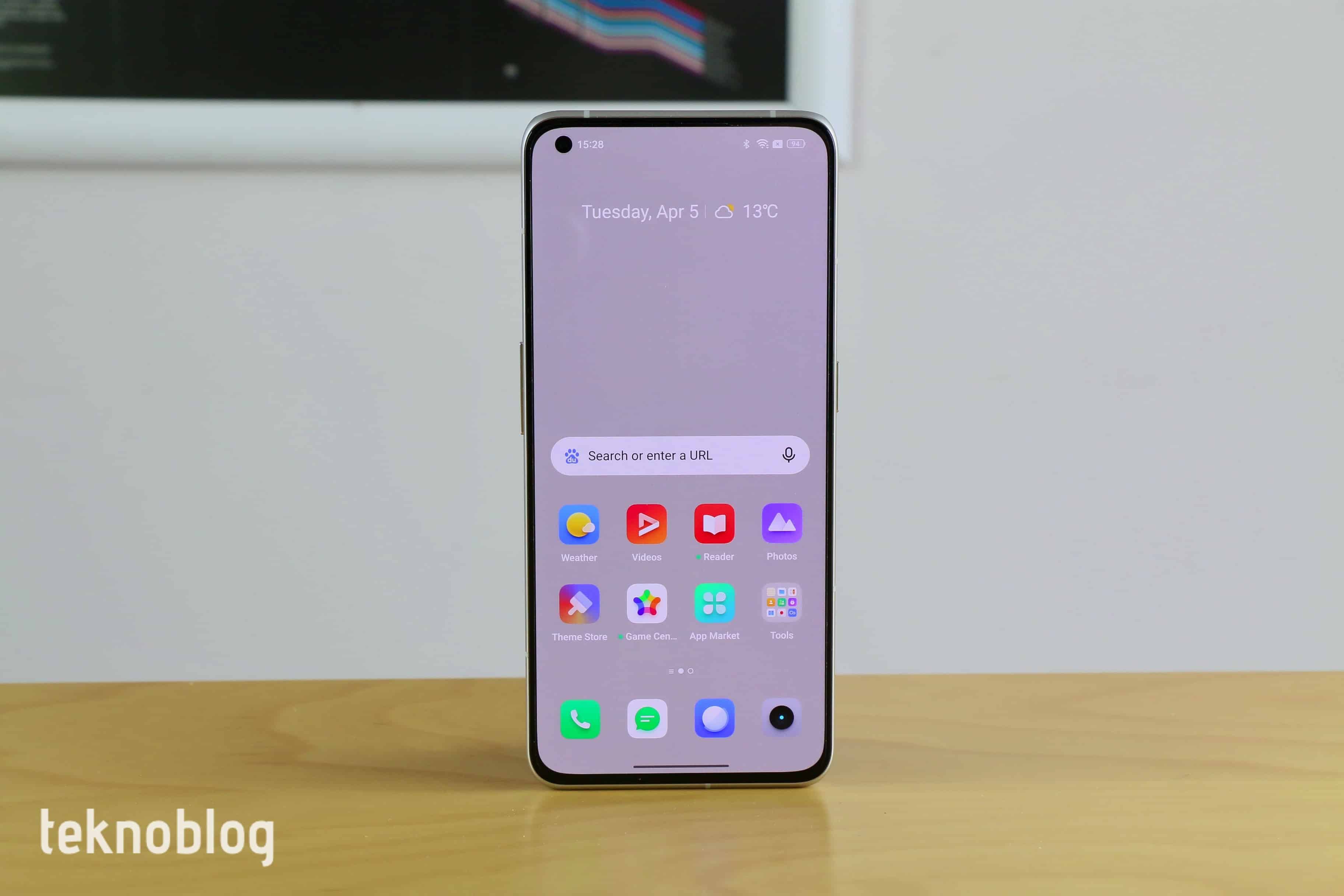 Ön yüzde, 6.7 inçlik ekranın etrafını saran çerçeve şimdiye kadar gördüklerimiz içinde en incesi olmasa da, bu büyüklükte ekrana sahip bir telefon için yönetilebilir yüzey alanının elde edilmesini sağlıyor. Düz yapıdaki ekran LTPO2 AMOLED teknolojisine sahip. 120 Hz’e kadar değişken yenileme hızı önde gelen özellikleri arasında yer alıyor. Kullanıcı arayüzündeki geçişlerde, animasyonlarda bu hızın farkı görülüyor. Ekran ayarlarında yenileme hızını 120Hz veya 60Hz olarak sabitlemek de mümkün. Bu arada ekran çözünürlüklü 1440 x 3216 piksel iken, varsayılanda Full HD+ olarak geliyor. Aradaki farkı ilk bakışta fark edemezsiniz, ancak detaylı şekilde bakarsanız keskinlikteki farklılıklar dikkatinizi çekecektir. Ekranın P3 renk gamı desteği var ve varsayılan olarak bu renk profili açık. Değiştirmek isteyeceğinizi düşünmüyoruz. 6.7 inç ekran yüksek bir parlaklığa sahip. 1400 nit maksimum parlaklığın sunulduğu ve HDR10+ desteğinin yer aldığı belirtiliyor. Netflix veya YouTube gibi uygulamaları yükleyemediğimizden bunu test edemedik. Ancak Realme GT 2 Pro’nun ekranının büyüklük, çözünürlük, yenileme hızı ve HDR gibi birçok açıdan tatmin edici olduğunu söyleyebiliriz. Video izlemek veya oyun oynamak keyifli olacaktır.