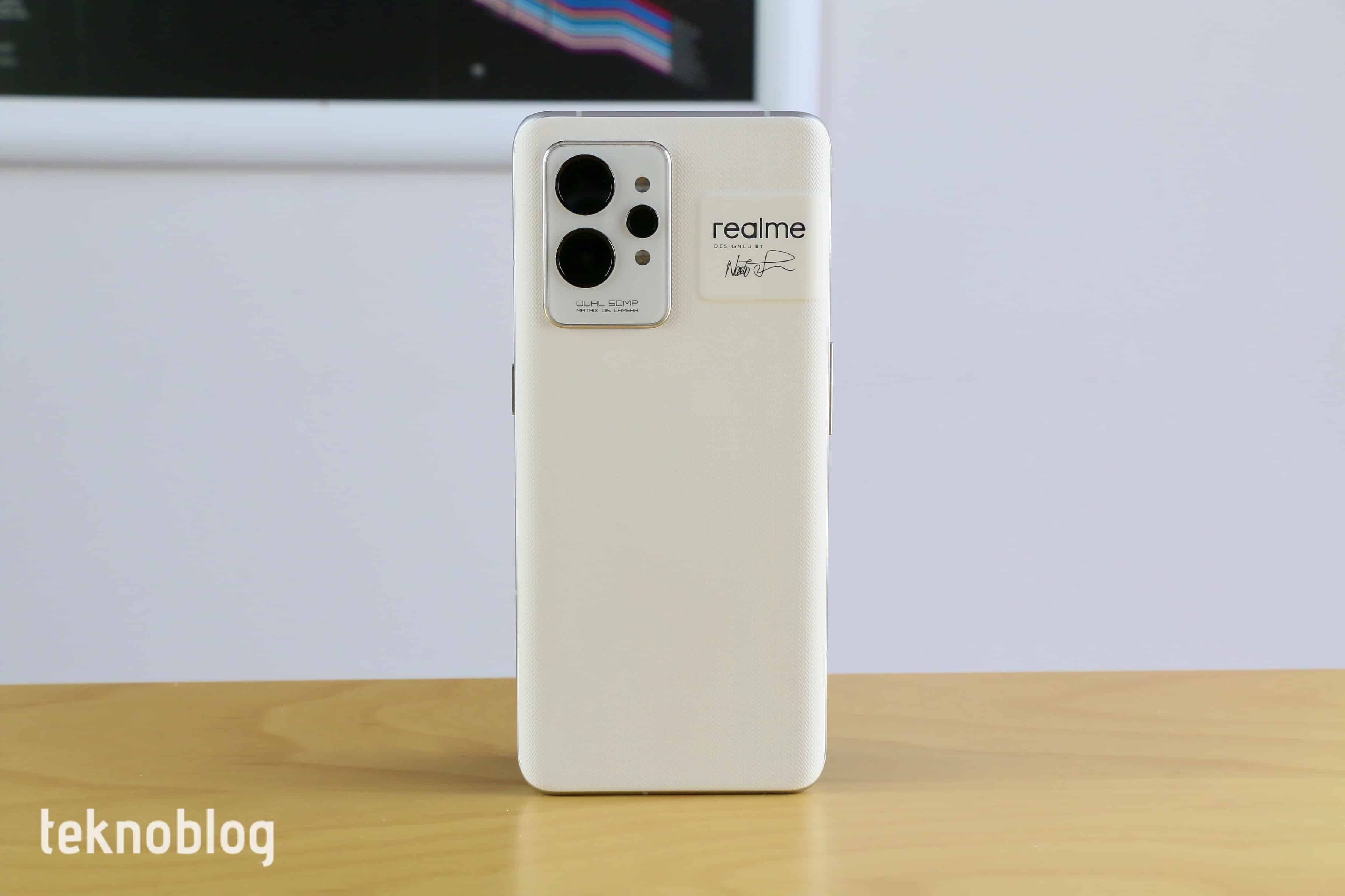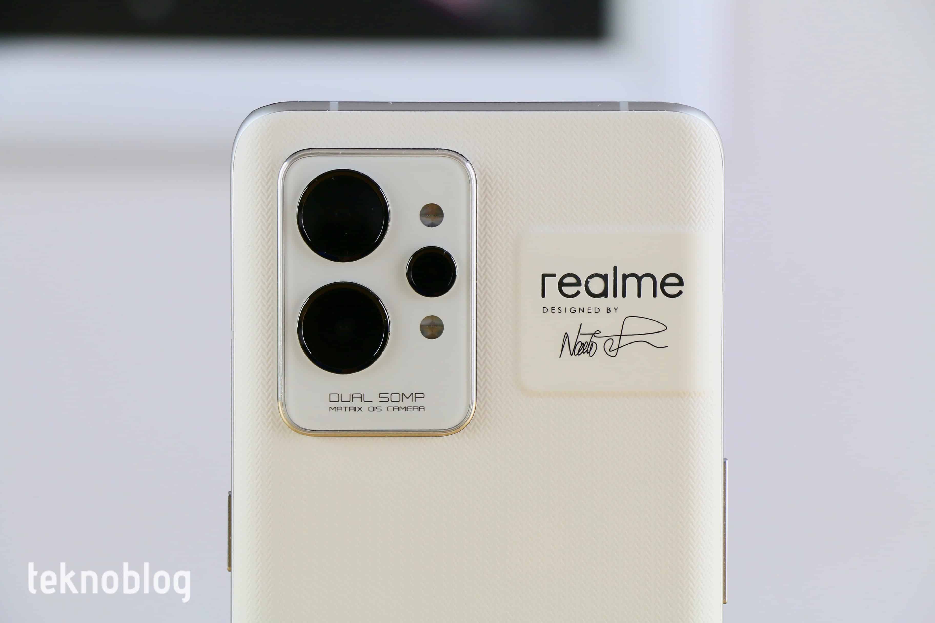GT 2 Pro’nun MWC 2022 sırasında YouTube’da izlediğim videolarında kağıt hissi veren arka yüzü ilgimi çekmişti. Plastikten yapılmış arka yüzü, denildiği kadar çok yüksek derecede kağıt hissini yansıtmasa da, sıradan bir plastikten çok daha kaliteli durduğunu ve amiral gemisi telefon seviyesinde bir his ve görünüm sunduğunu söyleyebilirim. Ayrıca desenli ve pürüzlü yüzeyi ergonomiye de olumlu katkı sağlıyor, telefon kolaylıkla elden kayıp gitmeyecektir. Arkada, kamera modülünün hemen yanında bu GT 2 Pro’nun tasarımcısı Naoto Fukasawa’nın imzası da hoş bir ayrıntı olmuş. Telefon kenarları alüminyumla çevrili, 8.2 milimetre ile makul bir profil kalınlığı var. Özellikle arka yüzün kenarlara doğru kavisli yapısı tutuşu kolaylaştırıyor.