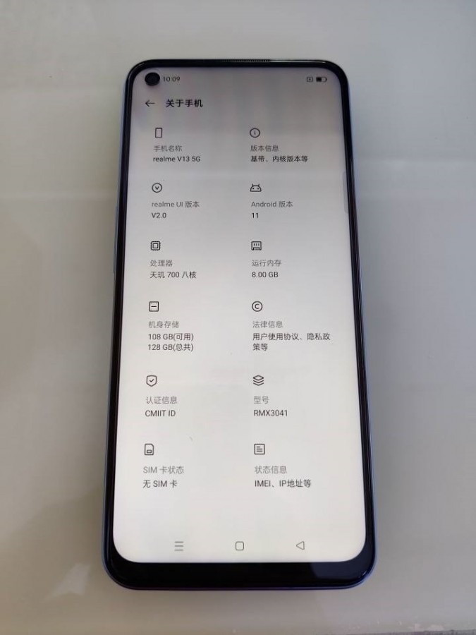 Sızan fotoğraflar Realme V13 5G modelinin Android 11 ve onun üzerinde Realme UI 2.0 ile geleceğini gösteriyor. Telefonun 8 GB RAM ve 128 GB dahili hafıza seçeneği de sunulacak gibi görünüyor.