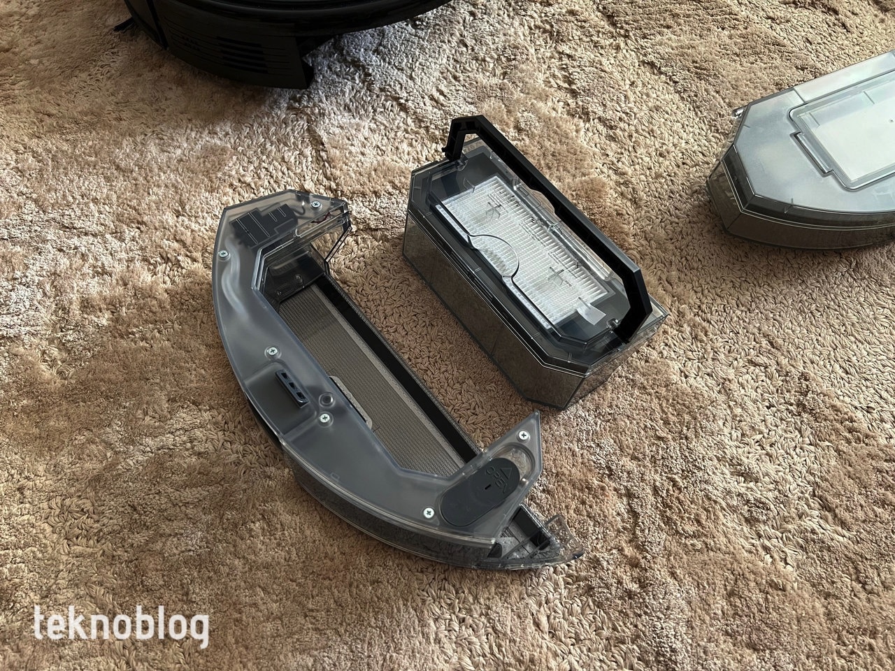 Robot süpürgenin kutusundan çıkanlara baktığımızda şarj istasyonunu, iki adet kenar süpürgesini ve kullanım kitapçığını görüyoruz. Toz haznesi de kutuda yer alıyor. Paspas özelliği için kullanılan su tankı ve ona özel toz haznesi, ayrıca ek paspaslar ise ayrı bir kutuda bize geldi. Su tankına entegre edilmiş toz haznesi, süpürme ve paspas işlerini aynı anda yapmaya izin veriyor. Ancak her ikisinin ayrı ayrı yapılmasıyla daha iyi verim alınıyor. Tankın üstünde yer alan açıklayıcı grafik, toz haznesini çıkarma veya su tankını doldurma işlemlerinin nasıl gerçekleştirileceğini açık biçimde görmenize izin veriyor.