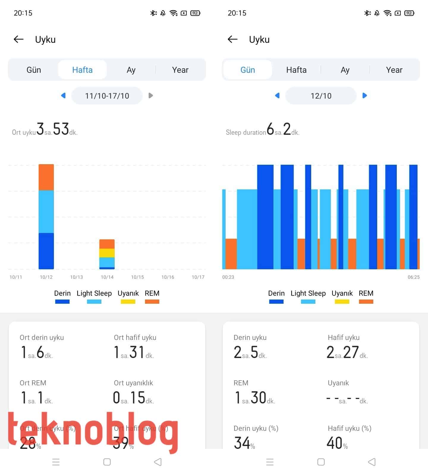 Realme Watch, uyku süresini ve kalitesini otomatik olarak ölçüyor. Ölçülen veriler saat üzerinden hızlı biçimde görülebiliyor. Ancak daha detaylı analiz için Realme Link uygulamasını açmak gerekiyor. Burada kullanıcılar farklı grafikler görebiliyor. Bunlara ek olarak uykunun Derin Uyku, Hafif Uyku, REM uykusu gibi evrelerinin süreleri de Realme Watch ile ölçülebiliyor. Uyku takibi genellikle iyi işlese de, zaman zaman hatalı olarak tanımlanabilecek ölçümler yapabiliyor.