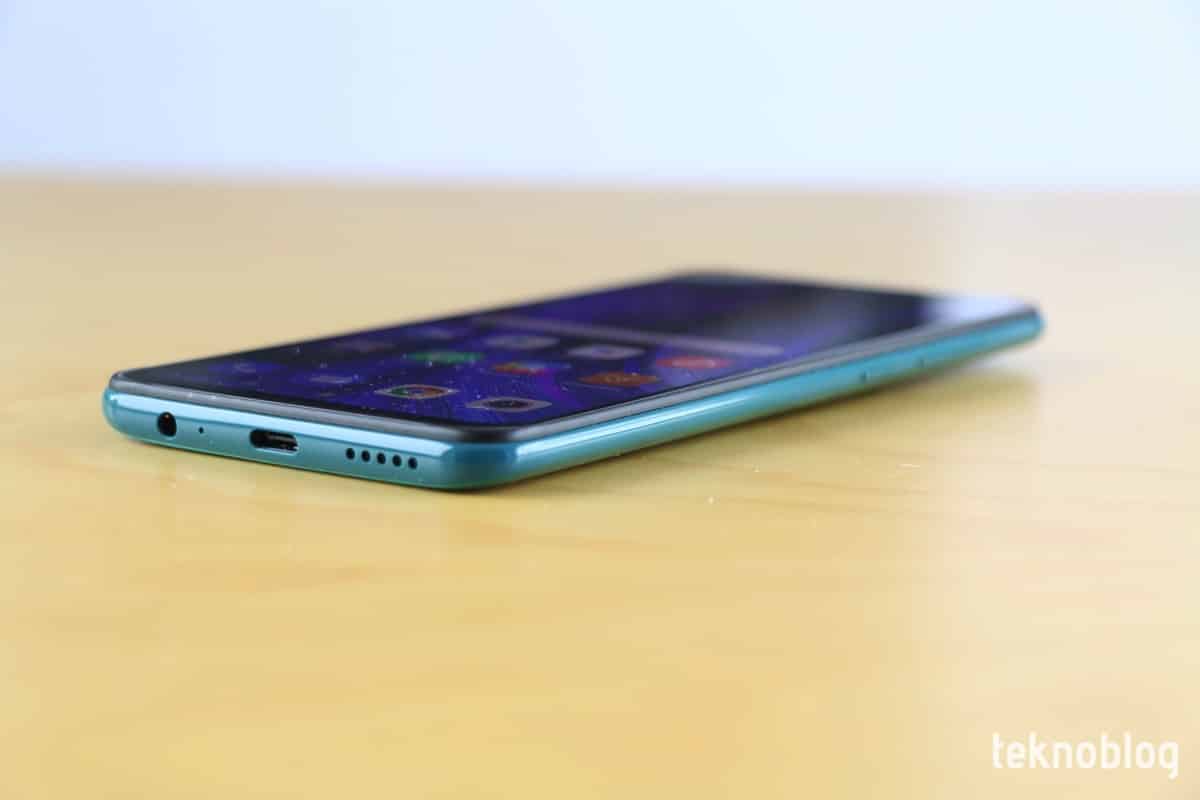 Alt kenarda ise soldan sağa doğru sırasıyla 3.5 mm. kulaklık jakı, USB-C girişi ve hoparlör ızgarası görülüyor. Tek hoparlör ızgarasının performansının tatmin edici seviyede olduğu rahatlıkla söylenebilir. Maksimum ses yüksekliği makul bir seviyede ve maksimum sese ulaşıldığında da kalitede rahatsız edici bir bozulma fark edilmiyor.