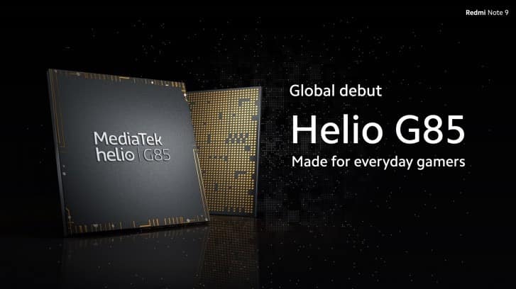 Telefonun içinde yepyeni MediaTek Helio G85 yonga set bulunuyor. Sekiz çekirdekli CPU ve Mali-G52 GPU barındıran bu işlemci MediaTek’in Helio G80 ve Helio G90T yonga setlerinin arasına yerleşiyor. Redmi Note 9’da 3 ya da 4 GB RAM, 64 ya da 128 GB dahili hafıza mevcut. 5020 mAh kapasiteli pil ve 18W hızlı kablolu şarj da mevcut. Telefonda Android 10 yüklü gelirken bunun üstünde MIUI 11 çalışıyor. Kızıl ötesi port, kulaklık jakı ve NFC de telefonun özellikleri arasında yer alıyor.
