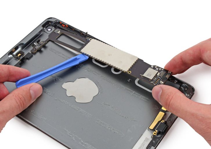 iPad mini’nin bağlantı noktaları ve bataryasında çok fazla yapıştırıcı maddenin kullanıldığı dikkat çekerken Lightning konnektörünün de lojik devreye lehimlendiği görülüyor. Bir yere gizlenmiş olan vidaları bulmak epey zor olurken, bunları çıkardıktan sonra da, çok küçük olmaları nedeniyle kaybetmek kuvvetle muhtemel.