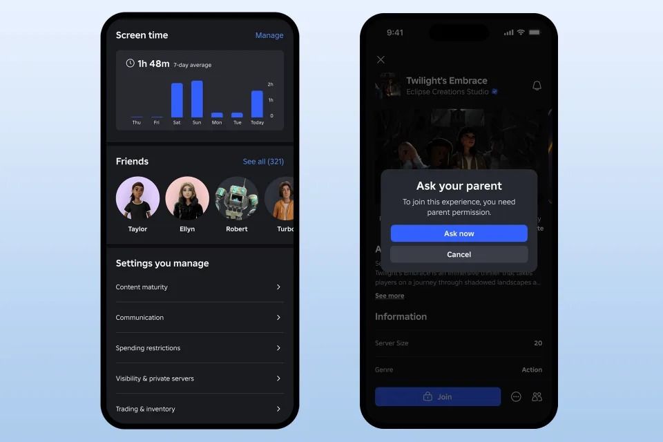 Roblox’un son güncellemeleri, ebeveynlerin çocuklarının platform üzerindeki etkinliklerini daha kolay izlemelerine olanak tanıyor. Artık ebeveynler, çocuklarının ayarlarını kendi cihazları üzerinden yönetebilecek ve belirli etkinlikler için onay gerektiğinde bildirim alacak. Örneğin, çocukların daha yüksek olgunluk dereceli bir oyuna katılmak istemesi durumunda, ebeveynin bu talebi onaylaması gerekecek.