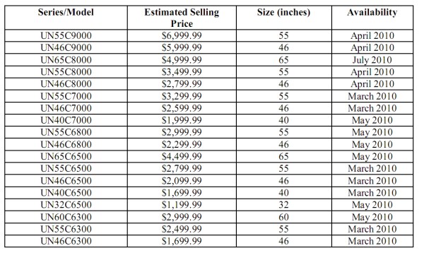 Sony’nin 3DTV serisiyle ilgili bilgileri açıklamasının ardından Samsung da CES’te tanıttığı ultra-ince 9000 serisi LED arkadan aydınlatmalı, dokunmatik ekrana ve video gösterme özelliğine sahip uzaktan kumandalı ve 3D destekli LCD HDTV’sinin fiyatları belli oldu.