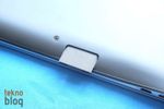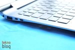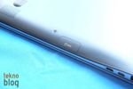 Ativ Book 9 Plus’ın menteşesi ekranın 180 dereceye kadar açılmasına izin veriyor. Bu kapağın dış tarafında sadece Samsung logosunun bulunduğunu görüyoruz. Bilgisayarın sol kenarında güç girişi, USB 3.0 portu, HDMI ve Ethernet portlarını görüyoruz. Ativ Book 9 Plus Gigabit Ethernet girişine sahip, ancak standart Ethernet portunu kullanmak için ayrı bir aksesuar kullanmak gerekiyor. Neyse ki, Samsung bu aksesuarı cihazın kutusuna eklemiş, ayrıca gidip satın almak gerekmiyor. Bu sayede ürünün kalınlığı da daha yükseğe çıkarılmamış oluyor. Ayrıca sol kenarda, bir kapak altına gizlenmiş şekilde SD kart yuvası (SD/SDHC/SDXC destekli) dikkat çekiyor. İlk bakışta bu yuvanın nerede olduğunu bulmakta zorlanabilirsiniz, biz de bilgisayarı elimize alıp evire çevire bu girişi aradık. Ancak bir kez yerini belirledikten sonra erişimi ve kullanımı kolay oluyor. Karşı tarafta, sağda ise ikinci USB 3.0 portunu, ortak olarak kullanılan kulaklık ve mikrofon girişini ve VGA girişini görüyoruz. Ayrıca güvenlik amacıyla kullanılabilecek Kensington kilit aksesuarının bağlantı yuvası da bu kenarda yer alıyor.