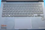 Klavyenin hemen altında camdan yapılmış izleme dörtgeni yer alıyor. Etrafına yerleştirilmiş metal görünümlü çerçeve yardımıyla izleme dörtgeninin sınırları belirgin hâle getiriliyor. Biz bu ultrabook’u her Windows bilgisayarı kullandığımız gibi fareyle kullanmaya devam ettik, ancak bu bilgisayardaki izleme dörtgeninin performansının ortalama üstü olduğunu söyleyebiliriz. Eğer yanınızda bir fare yoksa, ya da fare kullanacak kadar yeriniz yoksa, izleme dörtgeniyle işlerinizi başınız ağrımadan görebilirsiniz. Klavye tuş takımının hemen üstüne baktığımızda güç butonunun sağ tarafta yer aldığını görüyoruz. Güç butonu küçük ve anlaşılması biraz zor, ilk kez açacakken bunun yerini aramanız muhtemel. Sol tarafa doğru baktığımızda iki küçük LED lamba dikkatimizi çekiyor. Bunlardan bir tanesi bilgisayarın açık, diğeri de şarj edilmekte olduğunu veya şarjın bittiğini gösteriyor.