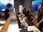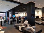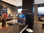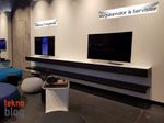Mağazada epey fazla bekleme alanı var. Buna bir de küçük kafeterya bölümünü ekleyin. Böylelikle Samsung, alışveriş merkezinde gezerken yorulanlar için dinlenme noktası işlevi de görecek bir mağaza sunmuş oluyor. Oturma birimlerinin yanlarına kablosuz şarj istasyonlarının yerleştirilmesi de iyi düşünülmüş bir fikir.