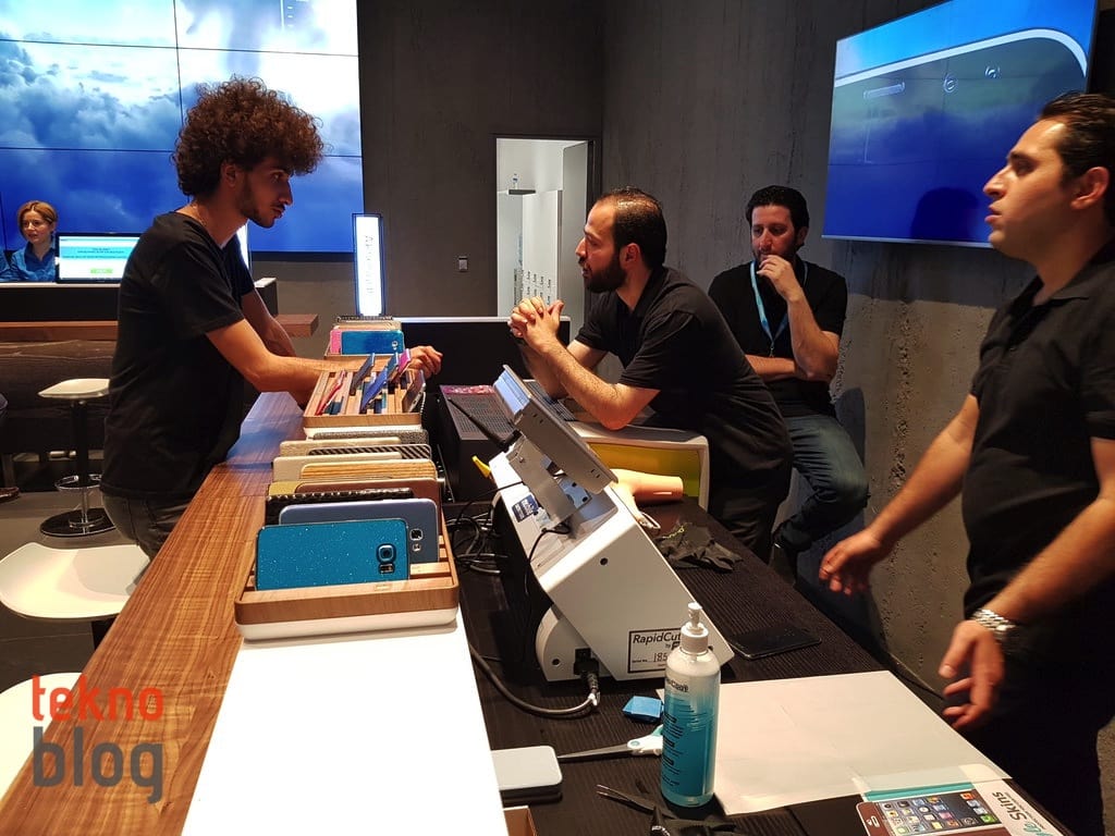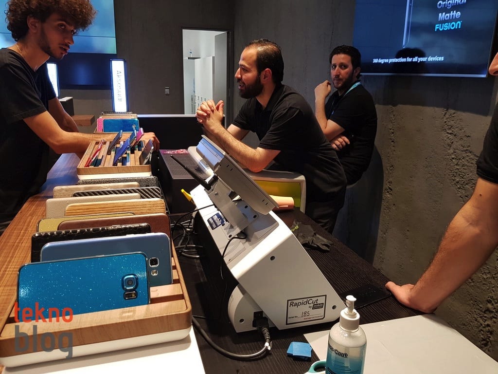 Ayrıca Samsung bir de, Galaxy telefonların dışına hızlı şekilde özelleştirilmiş kaplama yapmayı sağlayan özel sistemi de mağazaya yerleştirmiş. Sadece 10-15 dakika içinde telefonun arka kapağını özelleştirilmiş bir desenle kaplatabilir, ayrıca ekran koruyucusunu da özel makinesi sayesinde sorunsuz biçimde ekrana uygulatabilirsiniz.