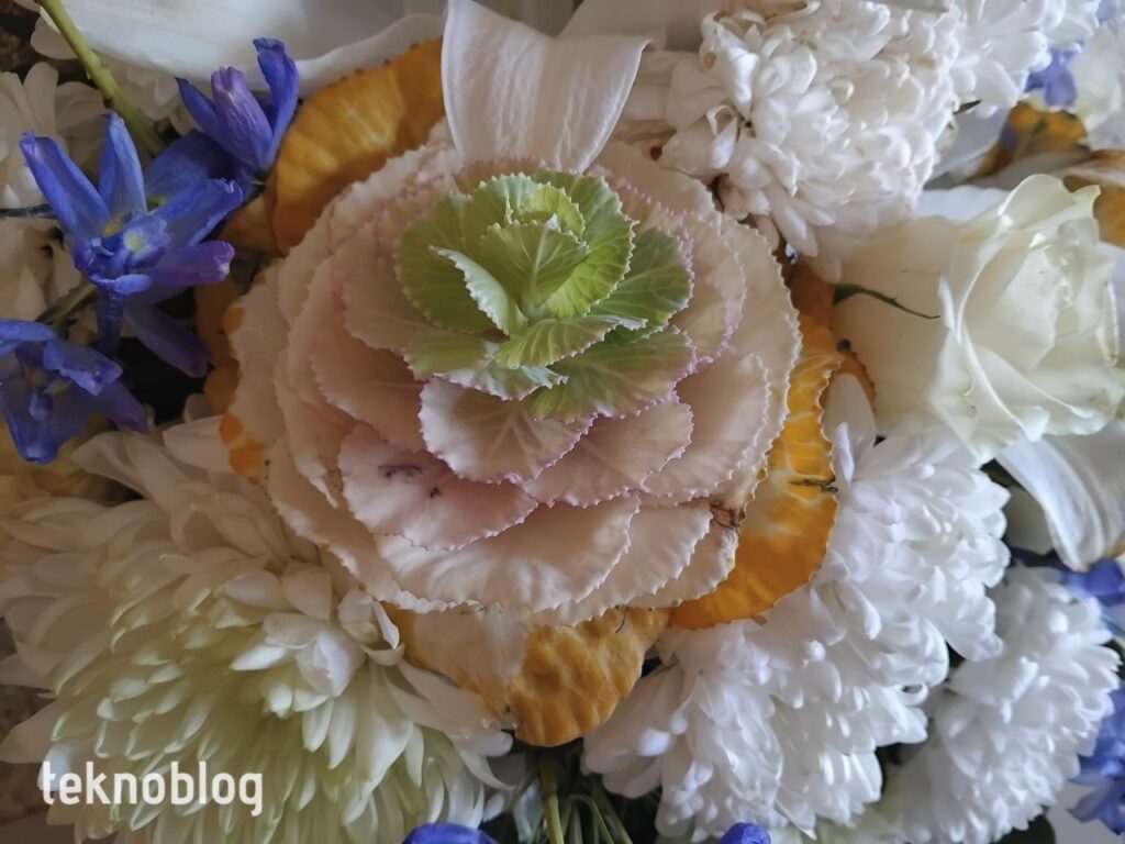 Samsung’un klasik Kamera uygulamasını burada da görüyoruz. Ekranın bir tarafında Fotoğraf ve Video modlarının yanında Portre modunu da görüyoruz. Daha Fazla bölümüne baktığımızda, burada Makro modu da dikkat çekiyor. Bu modu seçerek, özel makro kamera yardımıyla süjeye daha yakınlaşabilir ve daha net fotoğraflar çekebilirsiniz. Ancak bunların çözünürlük açısından düşük seviyede kalacağını belirtmemiz gerekiyor. Ayrıca düşük ışıktaki çekimlerde de parlaklık çok yüksek seviyelere çıkmayacaktır.