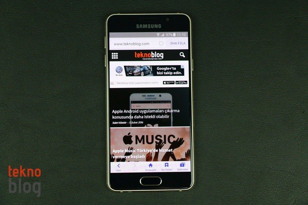 Geçen yılın A3 modeline göre ekranda boyut ve çözünürlük anlamında önemli değişiklikler görüyoruz. 4.7 inç ile ekranın boyutu artarken, 1280 x 720 ile çözünürlük tarafında da artış yapıldığını görüyoruz. Yakında baktığınızda pikselleri seçebilirsiniz, ancak normal şekilde kullanımda, göz ile ekran arasında optimum uzaklık bulunduğunda her şey yeteri kadar keskin ve net görünüyor. Öte yandan Super AMOLED ekran zengin renkler, geniş görüş açısı ve mükemmel kontrast sunuyor. Parlaklık aralığı da geniş. Böylelikle Galaxy A3 kullanıcıları ödediklerine karşılık gelecek olan deneyim daha üstünde bir görsel deneyim elde etme imkanı yakalıyor.