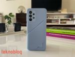 Galaxy A33 ile birlikte test merkezimize telefonla aynı renkte arkasına banka/kredi kartı ya da kimlik yerleştirilebilecek bir kılıf da ulaştı. Bu kılıf, telefonun kalınlığını doğal olarak artırıyor. Ancak cihazı kullanımda ekstra bir zorluk yaratmıyor ve güvenlik hissini de fazlasıyla güçlendiriyor.