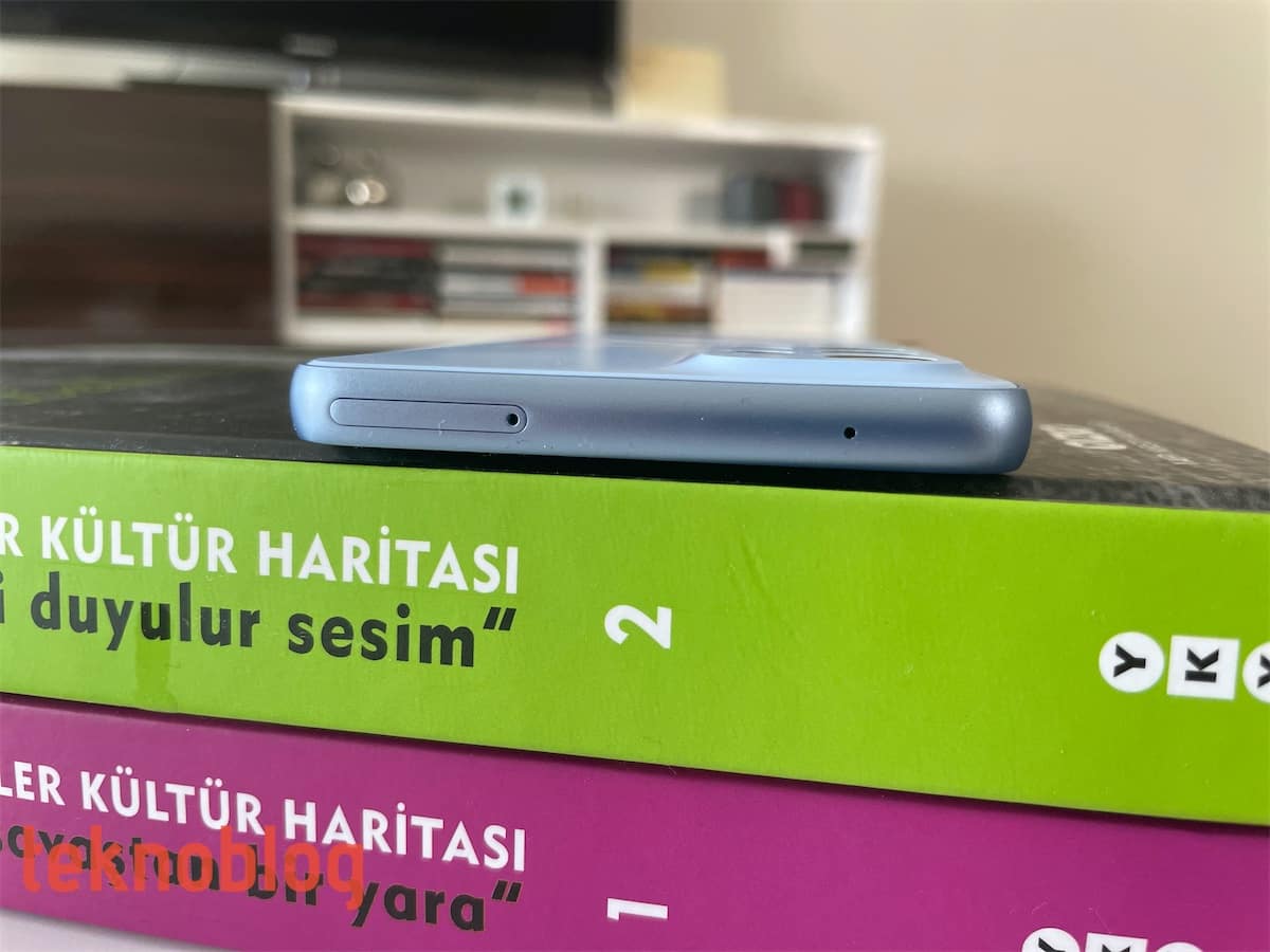 Galaxy A33’ün sol kenarı boş bırakılmış. Sağ tarafta ise güç butonu ve ses kontrol tuşları yer alıyor. Üst çerçevede nano SIM ve microSD kart tepsisinin yerleştirildiği yuva ve ikinci mikrofon bulunuyor. Alt tarafta ise soldan sağa doğru sırayla mikrofon, USB-C girişi ve hoparlör ızgarası kullanıcıları bekliyor. Galaxy A33’te 3.5 mm. kulaklık jakının bulunmadığını ayrıca belirtmekte fayda var.
