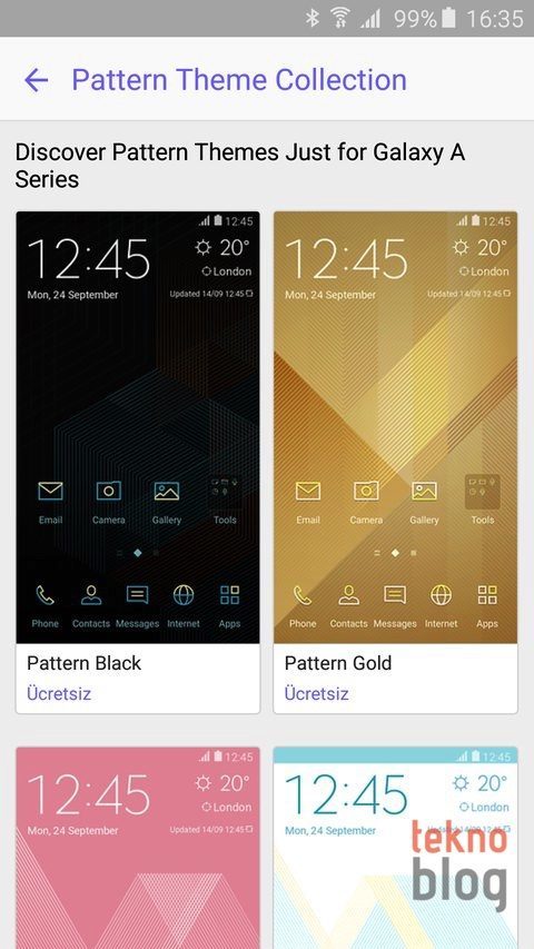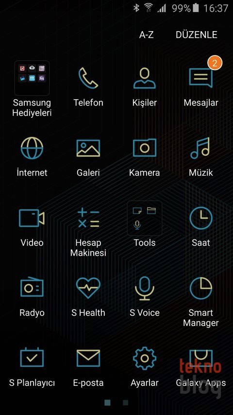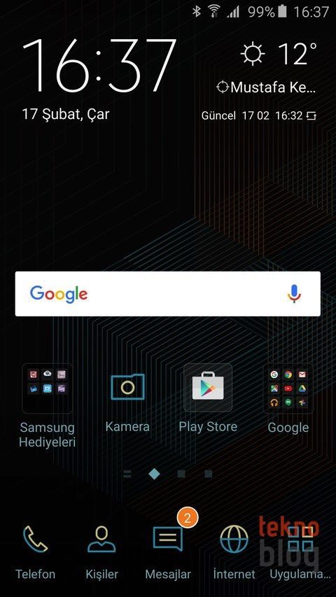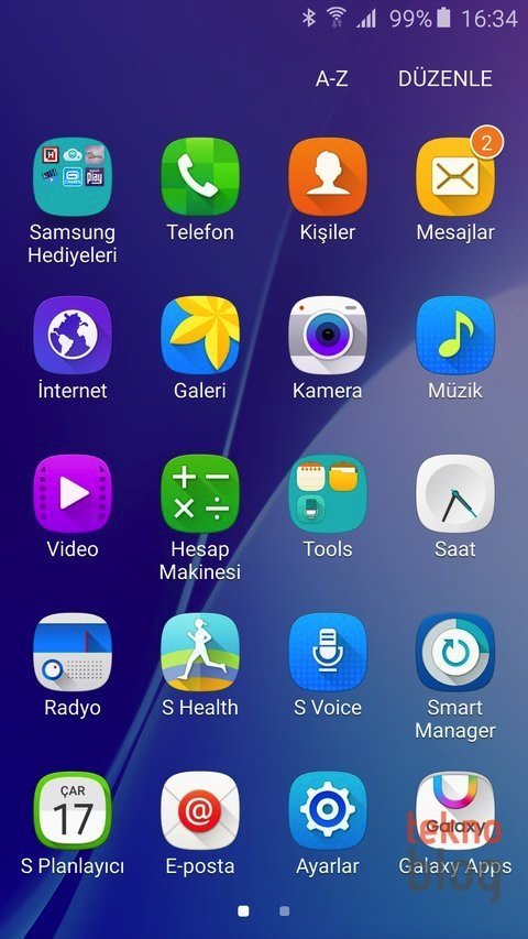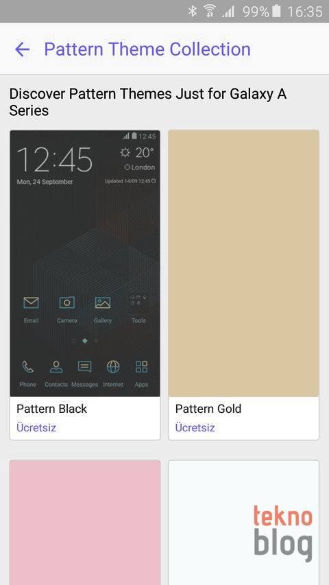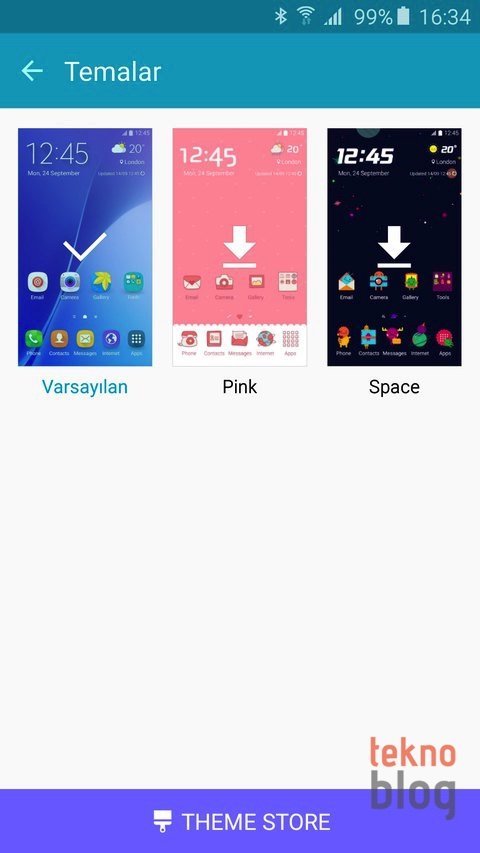 A5 (2016)’nın mavi tonlarının ağırlıkta olduğu kullanıcı arayüzü epey hoş görünüyor. Ancak arzu ettiğiniz takdirde kullanıcı arayüzünü farklılaştırmanız mümkün. Diğer Samsung Galaxy telefonlarında olduğu gibi, Galaxy A5 (2016)’da farklı temalar bulunuyor. Üstelik A serisine özel bazı temalar da bulunuyor. Temalarla birlikte duvar kağıdı, ikonlar değişiyor, bazı TouchWiz uygulamalarının da görünümü bunlara göre yeniden düzenleniyor.