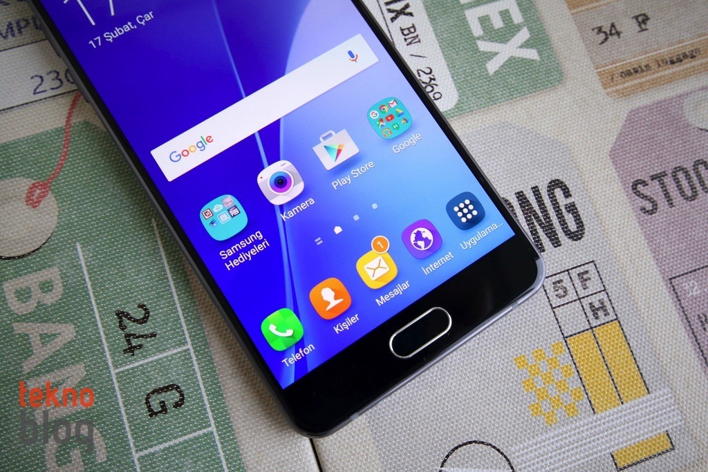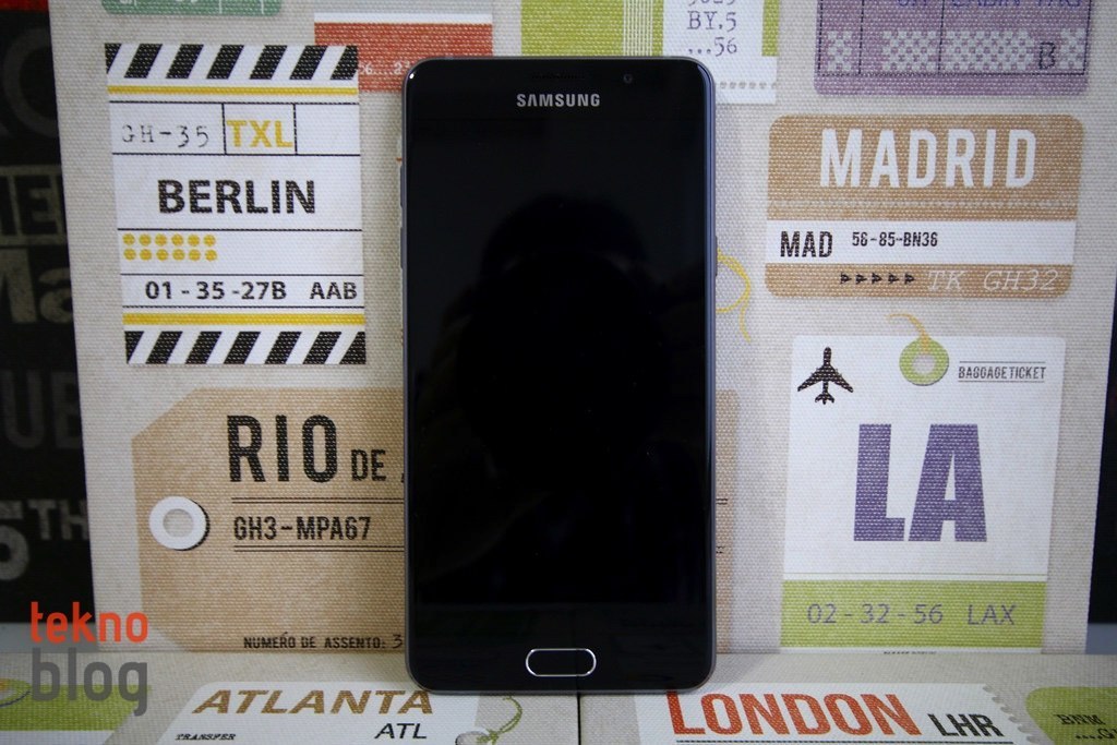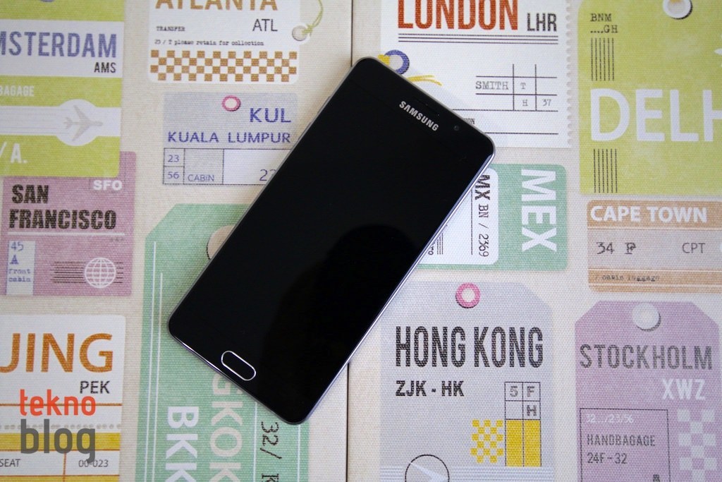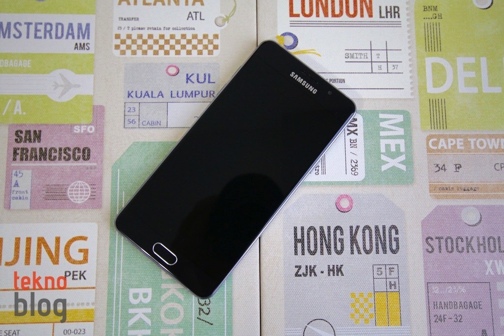 Hem önde hem de arkada Gorilla Glass 4 camın kenarlara doğru yaptığı hafif kavis A5’in daha hoş görünmesini sağlıyor. Ön tarafta 5.2 inç ekran büyük yer kaplıyor, yüzde 72.5’lik ekran-toplam yüzey oranı da bunu doğruluyor. Ekranın altında yine tüm Samsung Galaxy telefonlarında gördüğümüz gibi ana ekran tuşu, onun her iki yanına yerleştirilmiş çoklu görev ve geri işlevli kapasitif dokunmatik fiziksel tuşları görüyoruz. Geçen yılın A5’inden farklı olarak, bu yılın telefonunda ana ekran tuşu parmak izi okuyucu da barındırıyor. Böylelikle Galaxy A5 (2016) sahipleri ekran kilidini sadece parmaklarını ana ekran tuşuna dokundurarak açabiliyorlar.